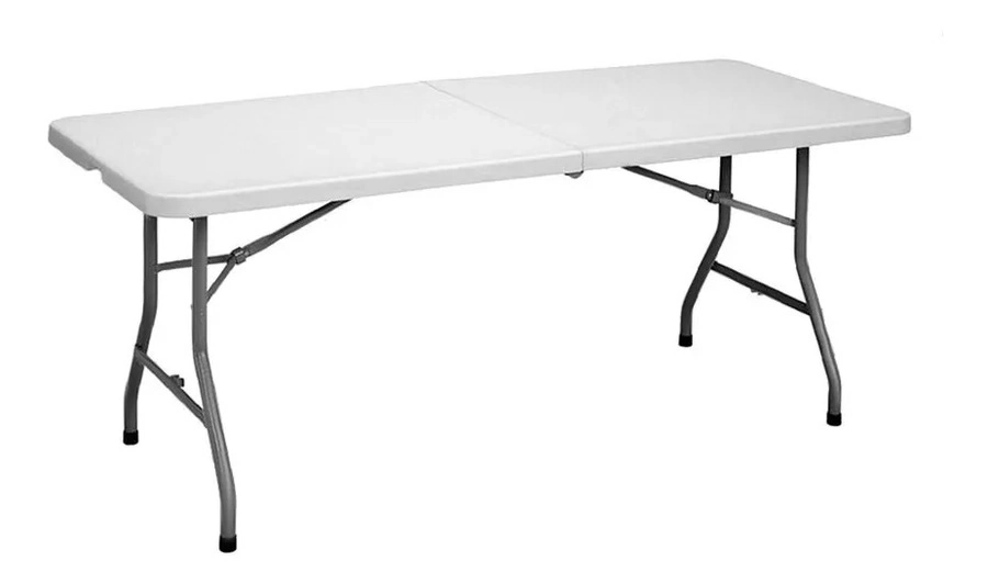 Mesa plegable rectangular de plástico resistente con estructura metálica. Liviana, estable y fácil de transportar. Ideal para eventos, ferias o uso doméstico. Medidas: 180×70×74 cm.