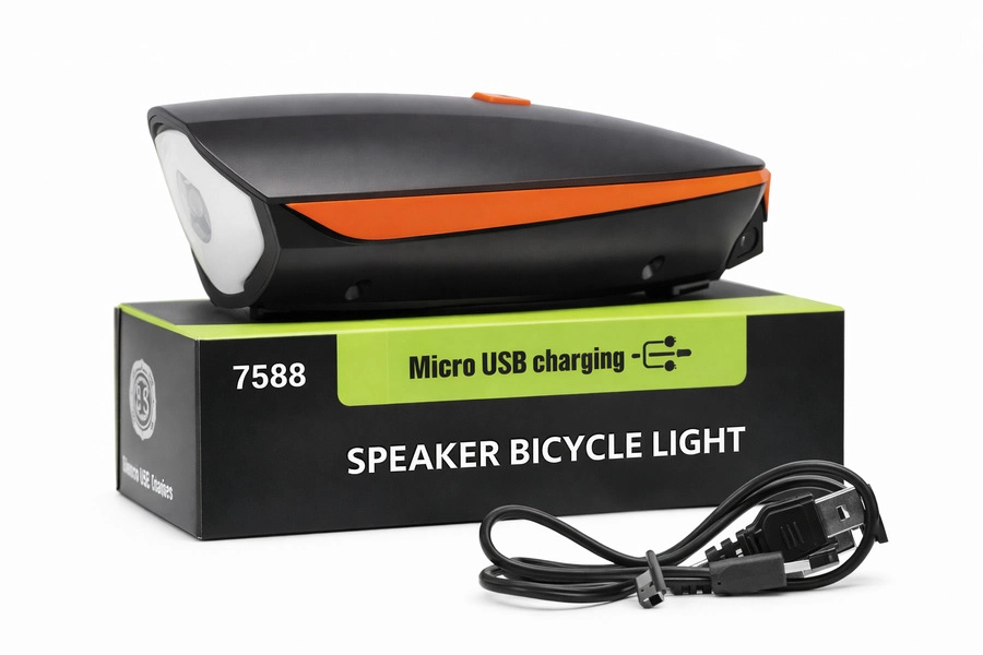 Parlante con luz para bicicleta recargable, ideal para mejorar tu visibilidad y disfrutar música mientras pedaleás. Integra luz LED frontal y altavoz en un solo dispositivo. Se recarga por USB, es fácil de instalar y perfecto para trayectos urbanos o recreativos. CAJA DE 120 UNIDADES