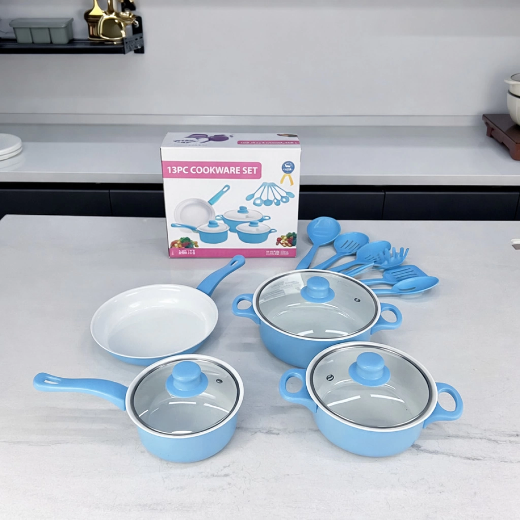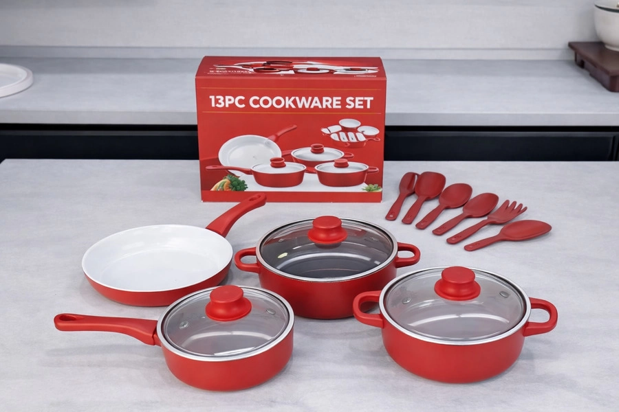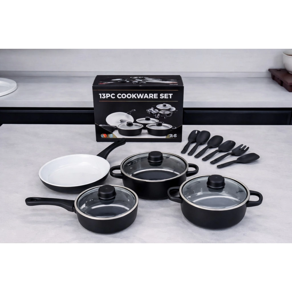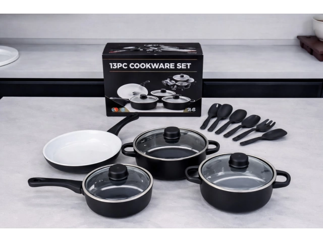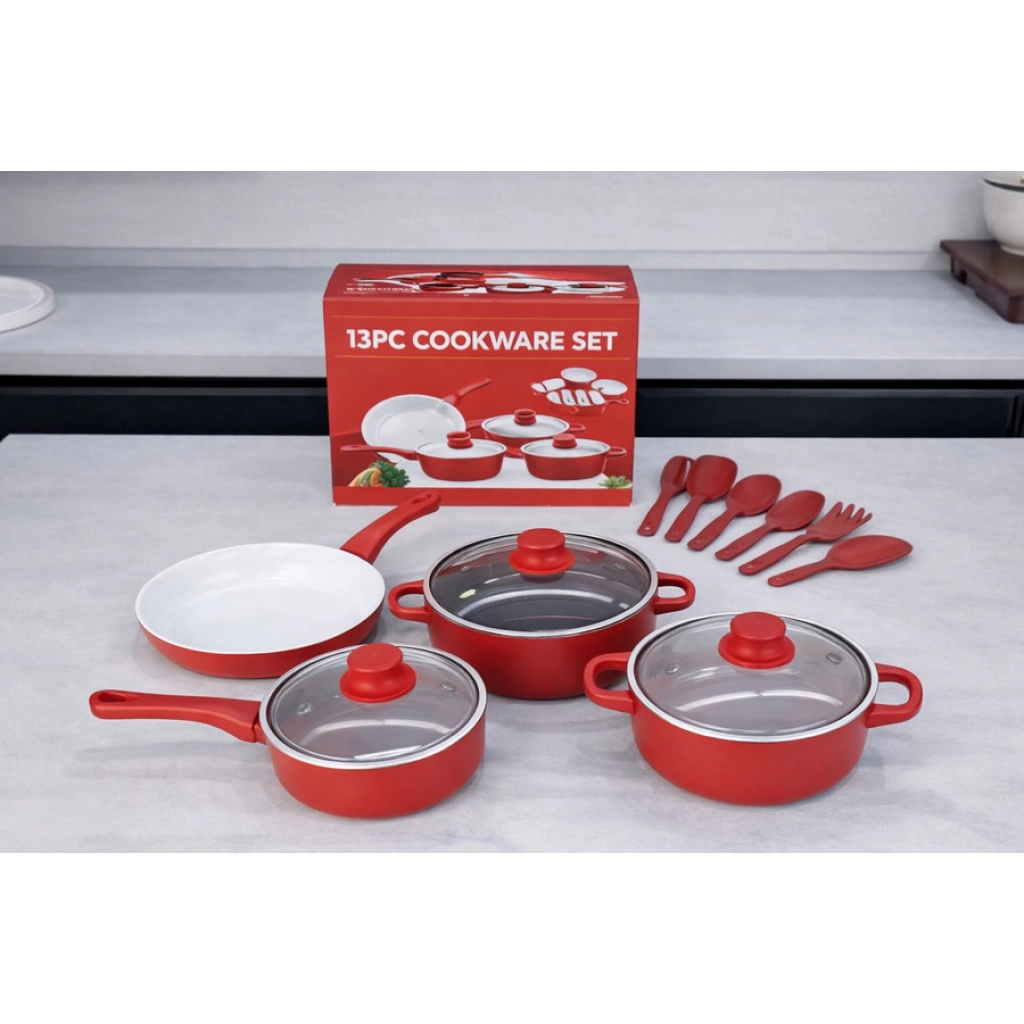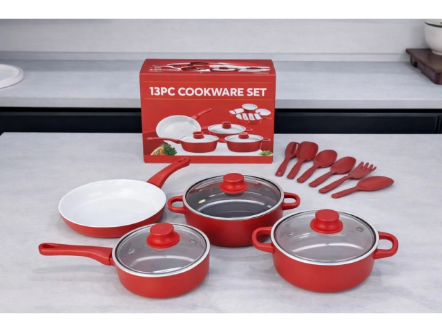 Set completo de cocina que incluye ollas, sartenes y utensilios esenciales. Fabricado en material antiadherente y de fácil limpieza. Incluye: Sartén 22cm Olla 22cm con tapa Olla 18cm con tapa Olla 16 cm con tapa Set menaje de 6 piezas Disponible en: ROJO/CELESTE/NEGRO