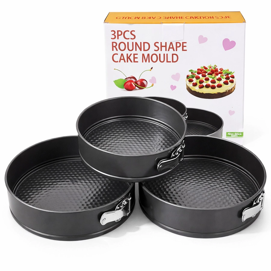 Set de 3 moldes redondos desmontables para repostería en medidas 24 cm, 26 cm y 28 cm de diámetro. Fabricados en acero con revestimiento antiadherente texturado, ideal para una cocción uniforme y desmolde sencillo. Cada molde cuenta con borde reforzado CAJA CERRADA CONTIENE: 12 UNIDADES