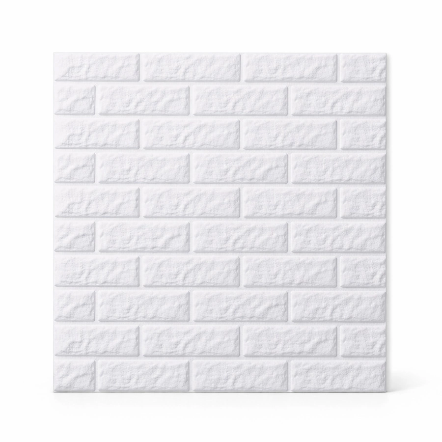 Panel autoadhesivo decorativo efecto ladrillo 3D, ideal para renovar paredes de forma rápida y sencilla. Diseño realista en color blanco, liviano y flexible. Fácil de instalar, sin obras ni herramientas. Medidas: 71 x 78 cm. Ideal para hogares, oficinas y locales comerciales.