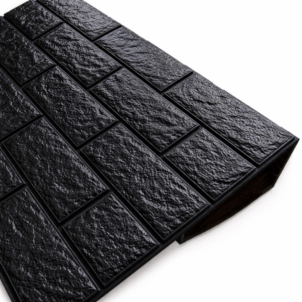 Papel Tapiz de Color Sólido ? Negro 70 × 77 cm Grosor: 3 mm Diseño acolchado tipo ladrillo, ideal para decorar paredes, aportar textura y darle un toque moderno y suave a cualquier espacio.