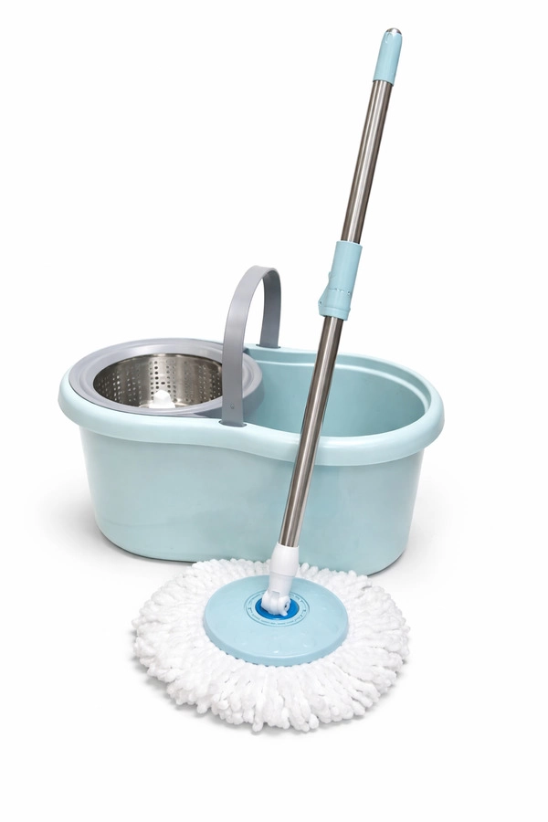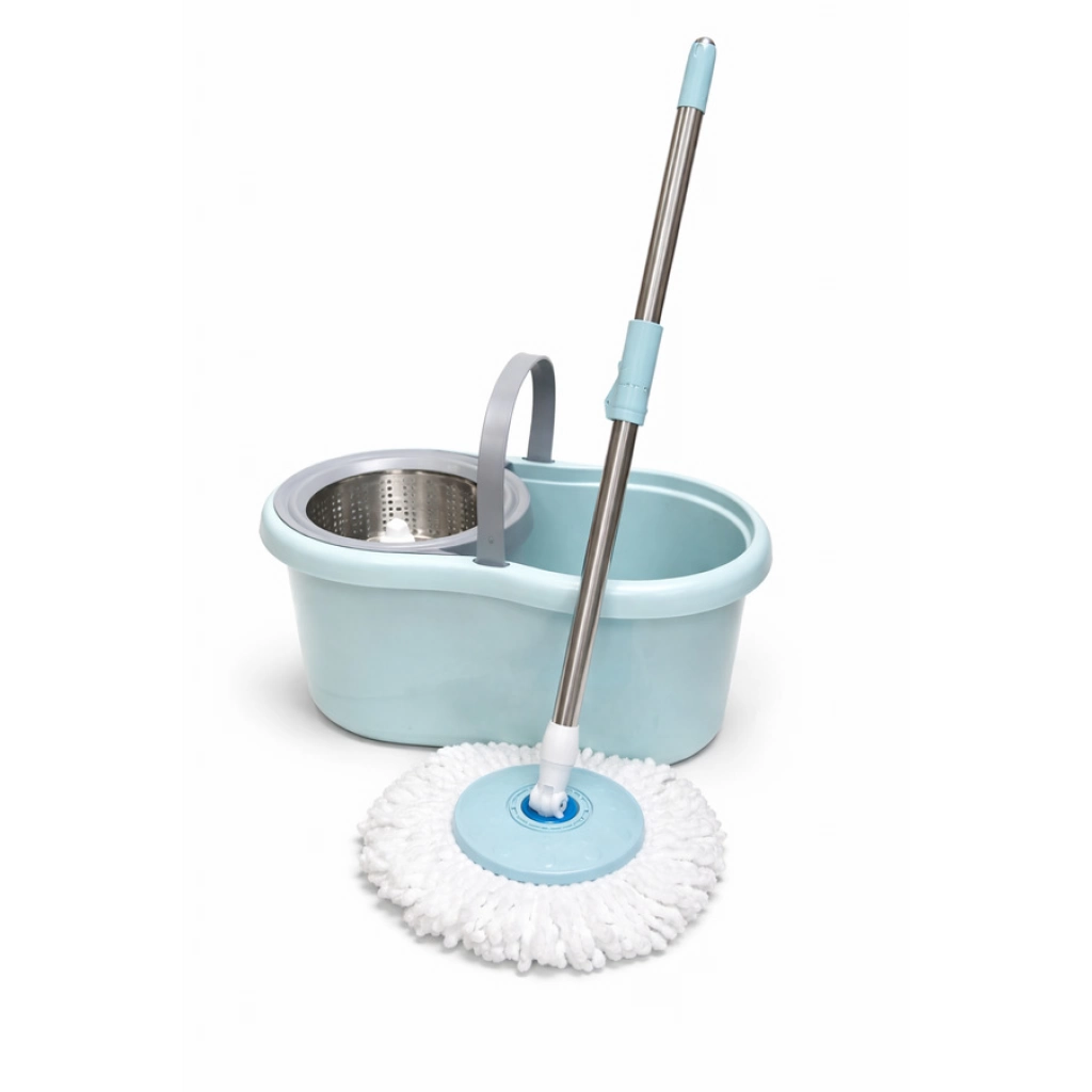Conjunto de mopa giratoria con balde diseñado para una limpieza rápida y eficaz. Su escurridor metálico permite un control óptimo de la humedad, mientras que el cabezal de microfibra atrapa polvo y suciedad con facilidad. El mango resistente brinda buen agarre y comodidad durante el uso. Ideal para mantener los pisos limpios y brillantes con menor esfuerzo.