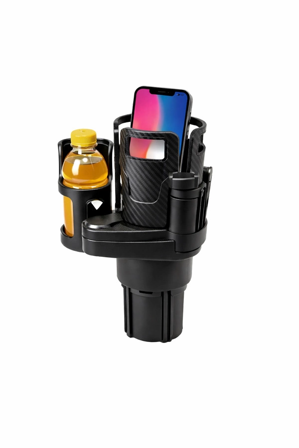 Organizador 5 en 1 para auto con porta vasos, soporte para celular y compartimentos multifunción. . Altura aproximada: 18,6 cm