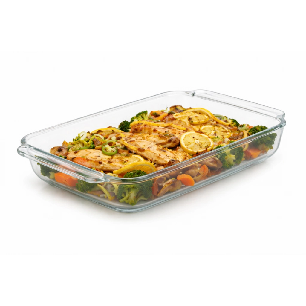 Fuente/bandeja para horno de vidrio resistente, ideal para preparar, hornear y servir todo tipo de comidas. Cuenta con capacidad de 2 litros y medidas de 30 x 20, perfecta para recetas familiares. Su diseño transparente permite controlar la cocción fácilmente y aporta una presentación elegante a la mesa. Apta para horno y fácil de limpiar, ideal para el uso diario en la cocina.