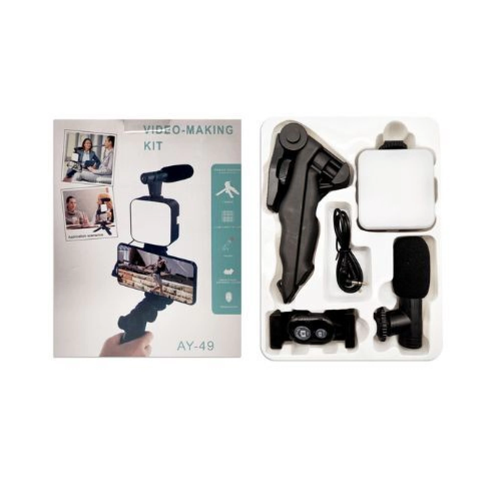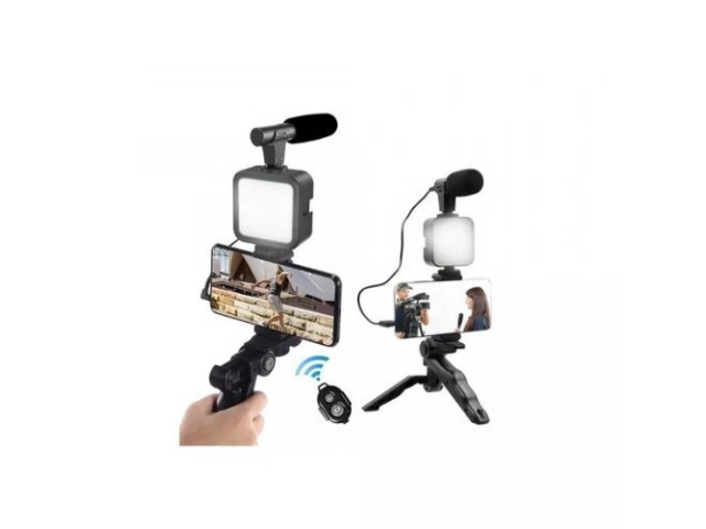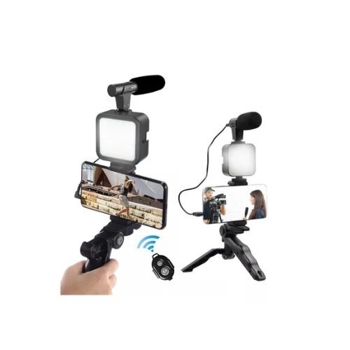 Incluye: -Micrófono direccional para audio claro y profesional. -Luz LED para una iluminación perfecta. -Trípode compacto y adaptable. -Soporte para celular con agarre cómodo.