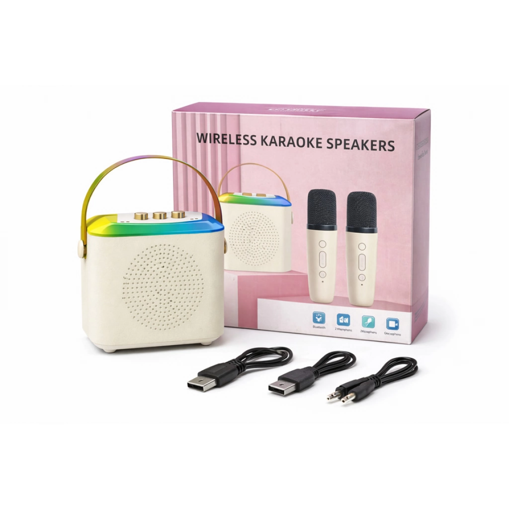Parlante karaoke inalámbrico ideal para reuniones, fiestas y momentos de diversión en casa. Su diseño compacto y portátil ofrece un sonido claro y potente, acompañado de micrófonos livianos y cómodos de usar. Fácil de transportar y de conectar, es perfecto para disfrutar de música y karaoke en cualquier lugar. Medidas: Parlante: 8 x 8 cm Micrófono: 14 x 4 cm Ideal para uso familiar, eventos pequeños y entretenimiento diario. ?? Si querés, también puedo hacer una versión más corta o adaptada a Mercado Libre.