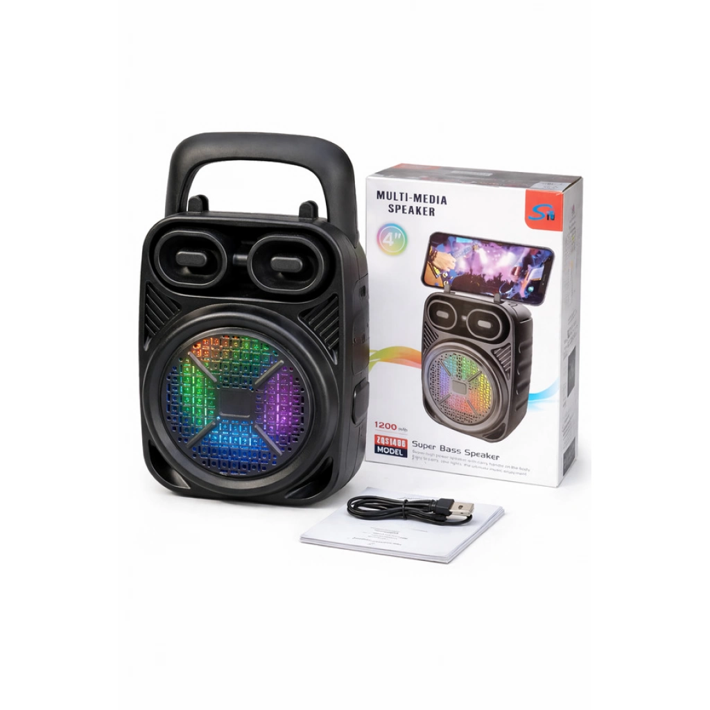 Parlante multimedia portátil con altavoz de 4?, potencia de salida de 8W y respuesta de frecuencia de 45Hz?18KHz para un sonido claro y potente. Batería de 1200 mAh, alimentación DC 5V y relación señal/ruido de 50 dB. Peso aproximado 0,61 kg. Ideal para uso diario en interiores o exteriores.