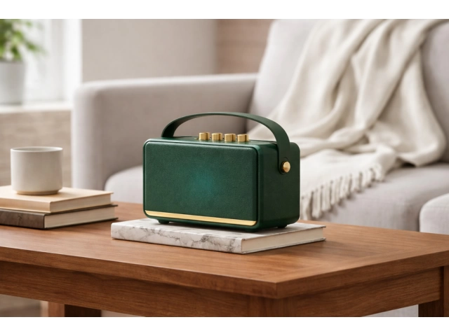 Parlante portátil con diseño retro y acabado elegante, ideal para el hogar, oficina o llevar a cualquier espacio. Ofrece un sonido claro y equilibrado, con controles superiores de fácil acceso y manija integrada para un transporte cómodo. Compatible con dispositivos Bluetooth para reproducir música de forma inalámbrica. Medidas: 20 cm x 11 cm Características destacadas: Conexión Bluetooth Diseño retro moderno Portátil y liviano Manija integrada para fácil traslado Ideal para uso diario, decoración y regalo Perfecto para quienes buscan estilo y funcionalidad en un solo producto.