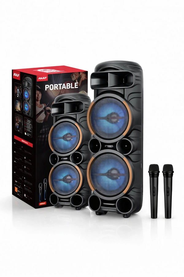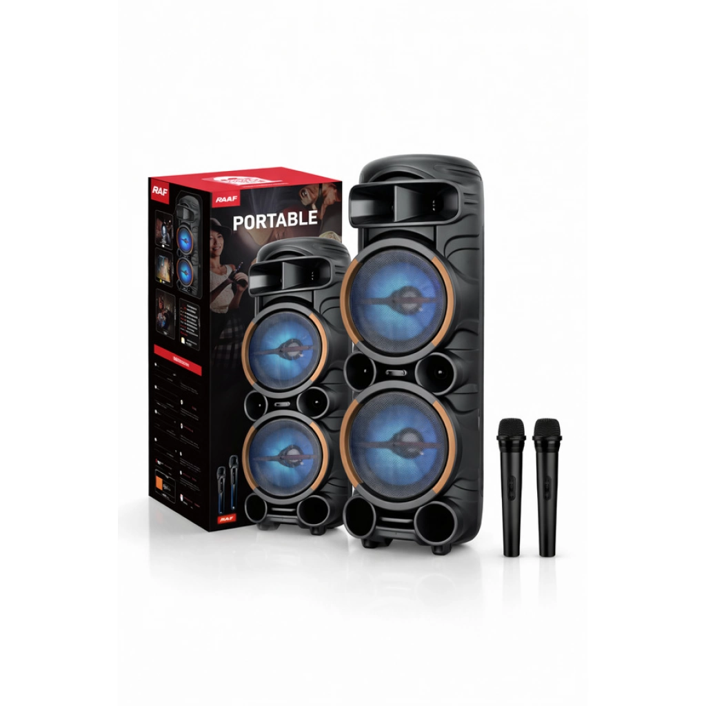 Parlante Bluetooth 8'' ? Dimensiones: 81 × 28 cm Incluye: micrófono Características Bluetooth: Versión 5.0 Entradas: USB, tarjeta TF, FM, TWS, entrada de línea y micrófono Altavoces: 2 woofers de 8 pulgadas Potencia de salida: 10W × 2 Batería: 2400 mAh Voltaje de funcionamiento: 3.7?4.2V Carga: 5V / 1A Material: Polipropileno (PP)