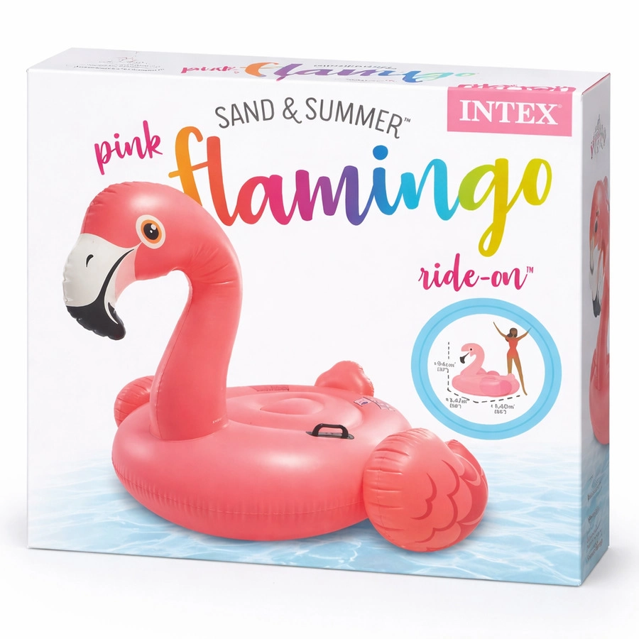 Flotador inflable Flamenco Rosa Intex ideal para piscina o playa. Diseño cómodo y resistente, con asas para mayor estabilidad. Medidas aproximadas: 142 cm de largo x 137 cm de ancho x 94 cm de alto. Perfecto para relajarse y disfrutar del verano con estilo.