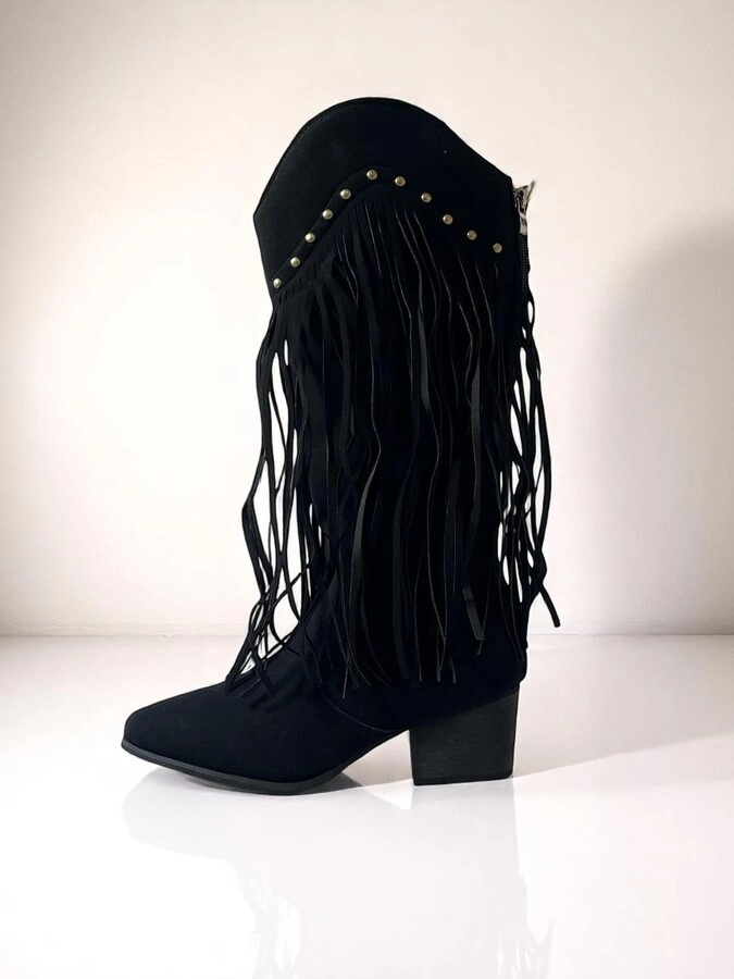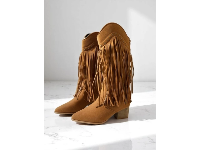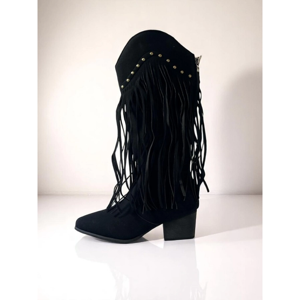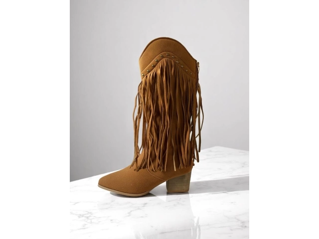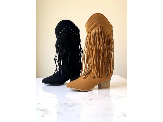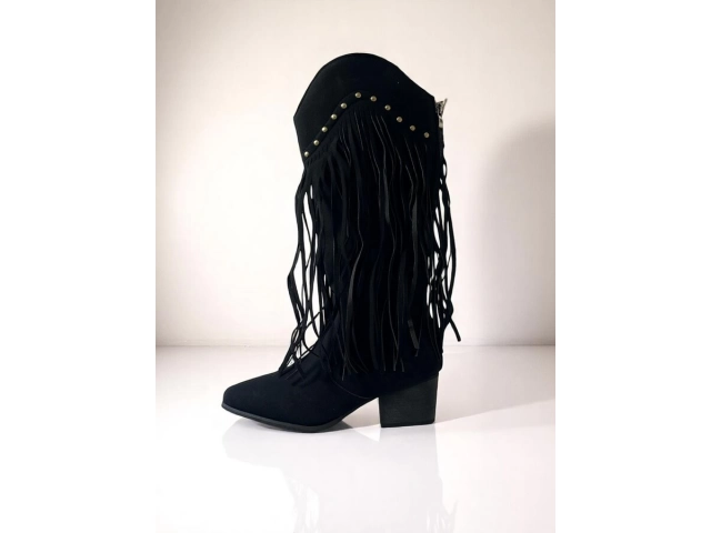 En stock En stock BOTA Botas de gamuza sintética con diseño texano y flecos laterales. De caña media, punta semi-fina y taco bajo.COLORES: Caramelo/ NegroTALLES: 36/37/38/39/40 Precio $U 1.260,00 IVA inc. Cód.24C1290