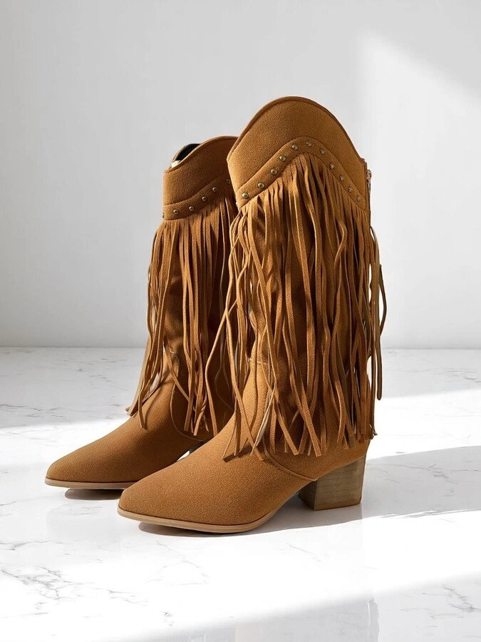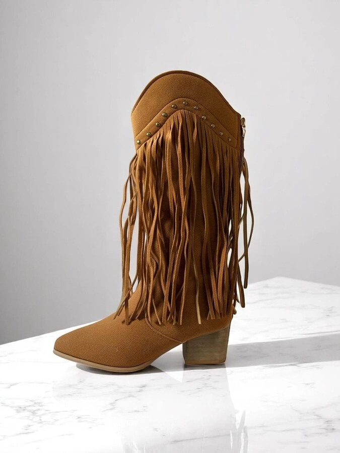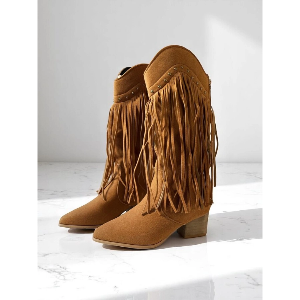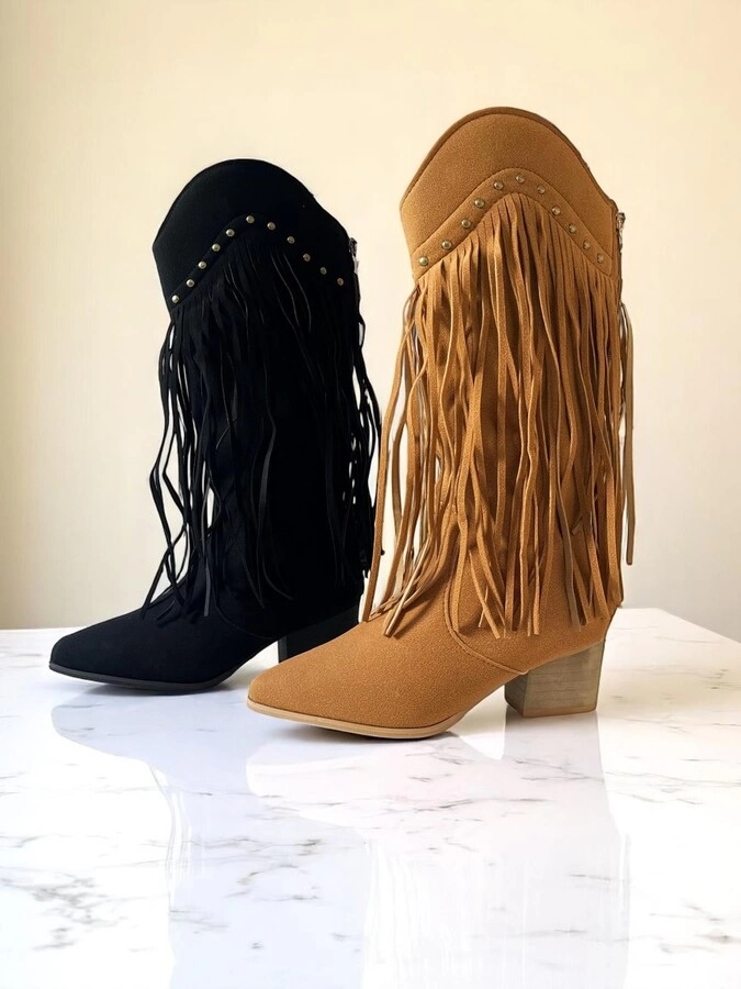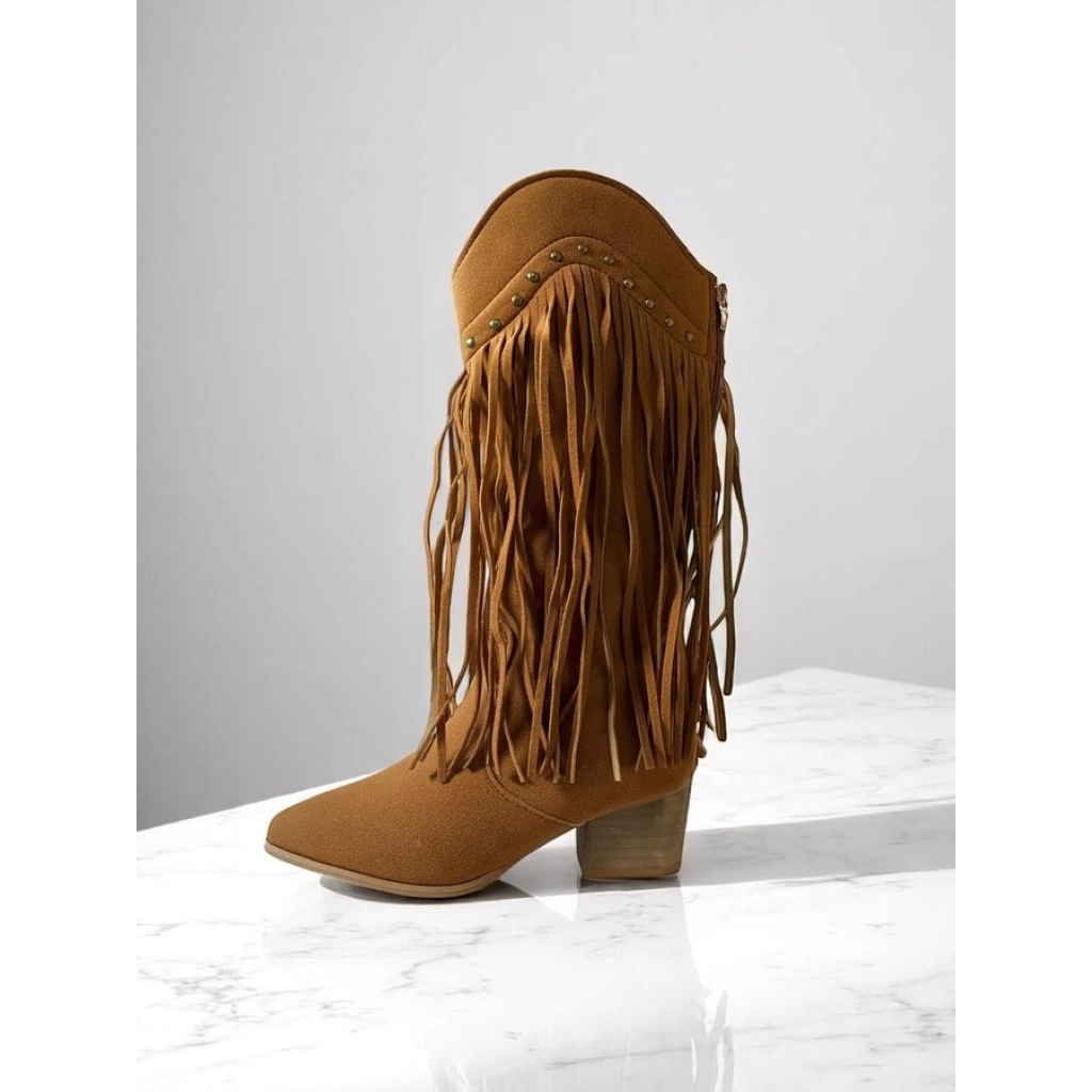 En stock En stock BOTA Botas de gamuza sintética con diseño texano y flecos laterales. De caña media, punta semi-fina y taco bajo.COLORES: Caramelo/ NegroTALLES: 36/37/38/39/40 Precio $U 1.260,00 IVA inc. Cód.24C1290