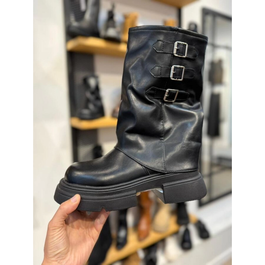 TEXANA vintage caña media-baja. Con bordado en la punta, tira con tachas.