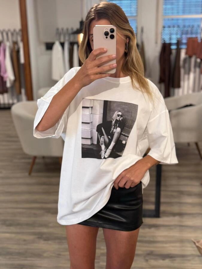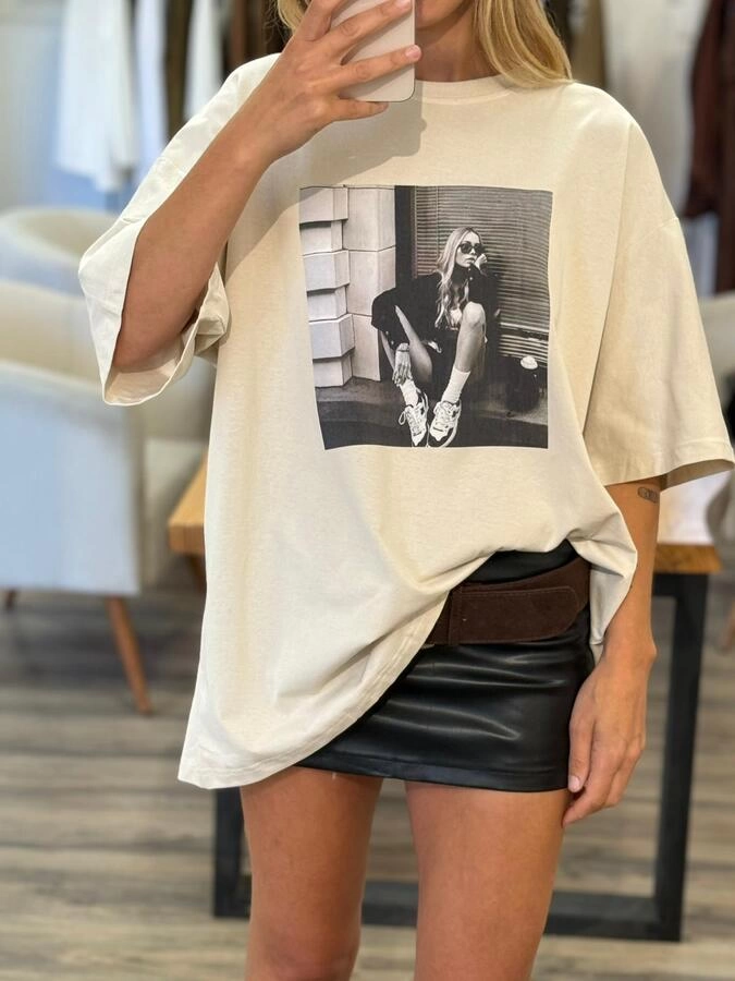 Camiseta unisex de corte relajado con estampado fotográfico frontal. Disponible en blanco, beige y negro. Tejido suave y ligero, ideal para un look casual y moderno. Perfecta para combinar con jeans o shorts y aportar un toque urbano a cualquier outfit.