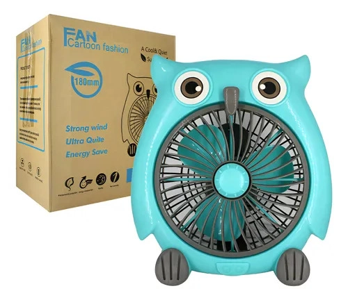 Divertido Ventilador de Mesa Infantil con diseño de buho Regalo ideal para el Verano y decorar el cuarto de los niños. -2 Velocidades. -Super Silenciosos. -30 cm de alto x 27 de ancho x 14 de profundidad. -Peso 1.28 Kg -20 Watts -Alimentación: 220v LA CAJA TRAE: 18 UNIDADES