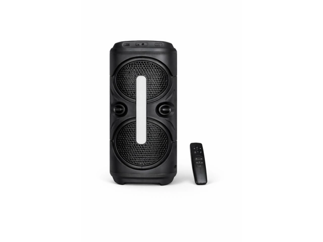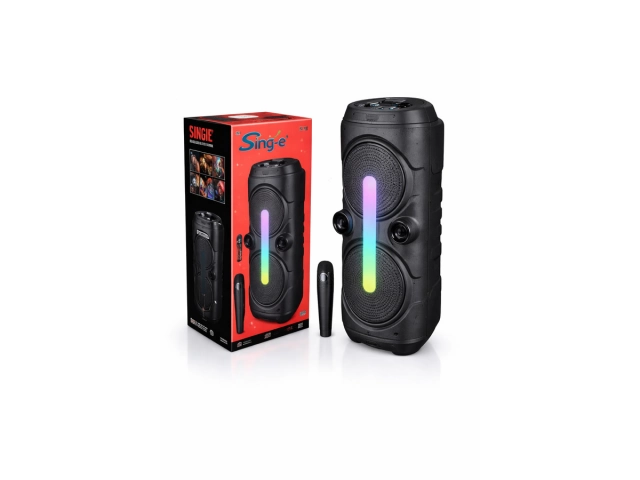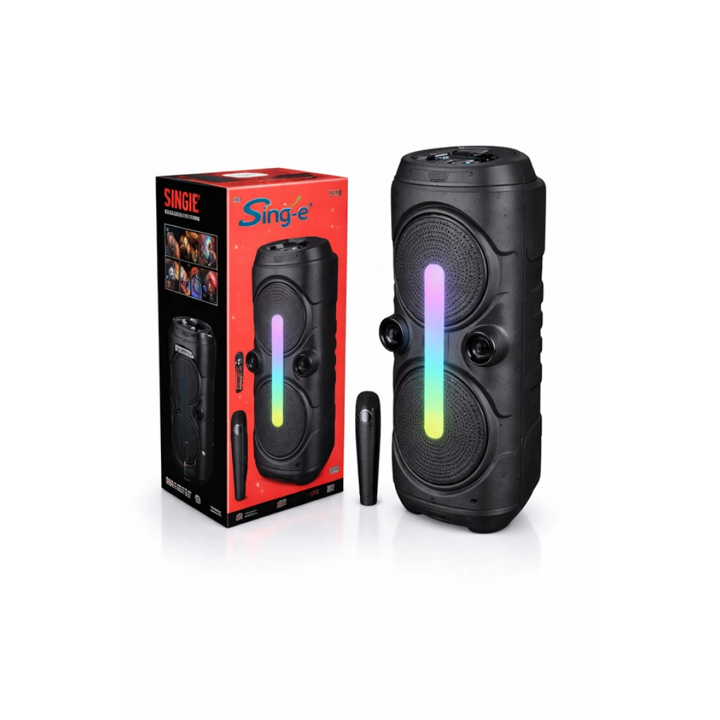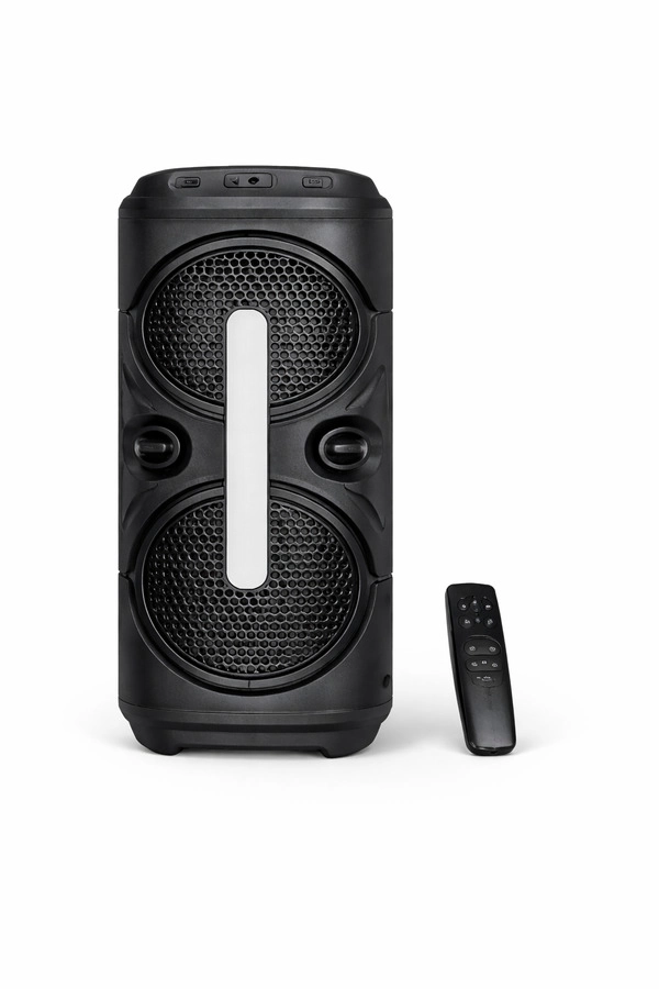 Parlante portátil de 4" con doble bocina, sonido potente y buen rendimiento. Ideal para música en casa o exteriores. Diseño compacto y fácil de transportar. Medidas: 40×15.5 cm.