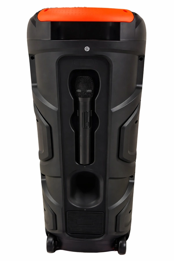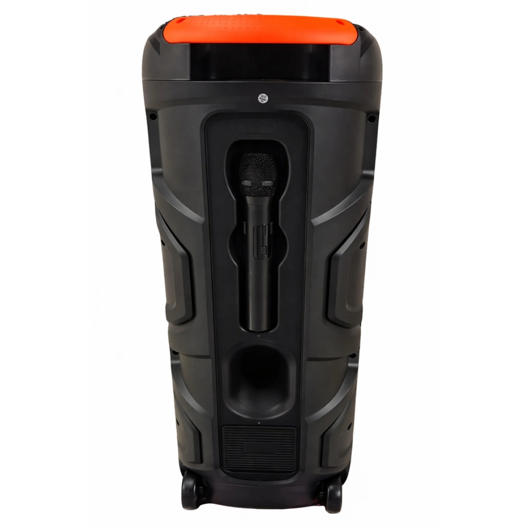 PARLANTE BOCINA DOBLE 8" BT / FM / con micrófono / con AUX / USB / tarjeta TF / TWS 18650 / 3,7 V / 3600 mAh / 9 W × 2 Medidas:28x29x80,8cm CANTIDAD POR CAJA: 1 UNIDADES