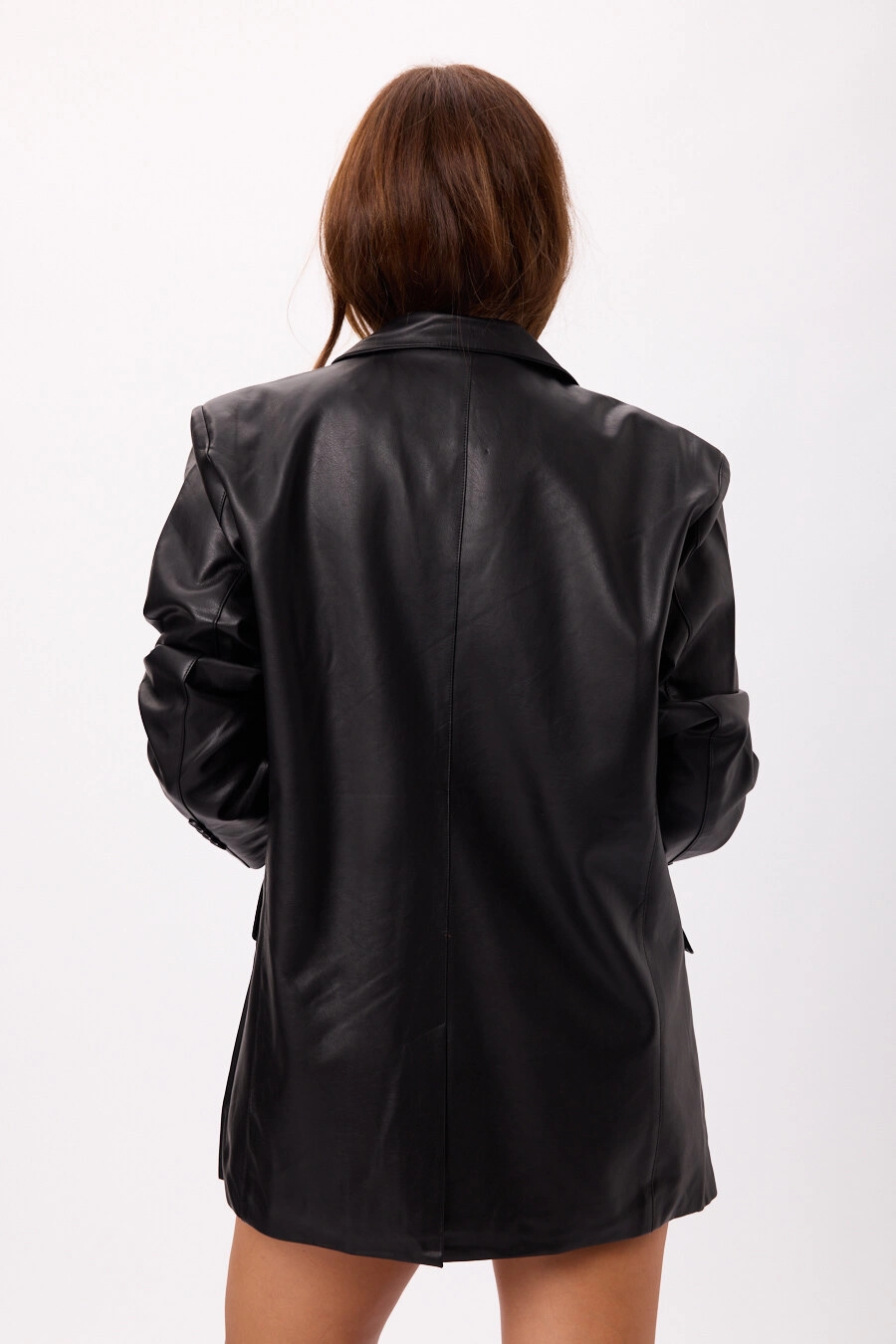 Blazer corto de eco cuero con solapas y botones Talle disponible: M/L.