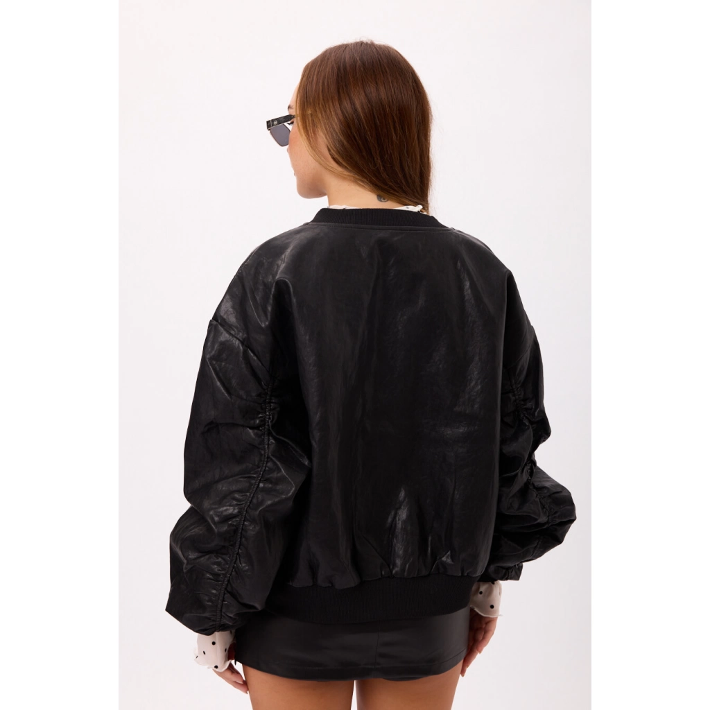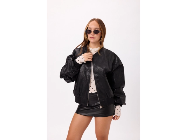 Campera bomber de eco cuero con cierre frontal y puños elastizados. Color: negro.