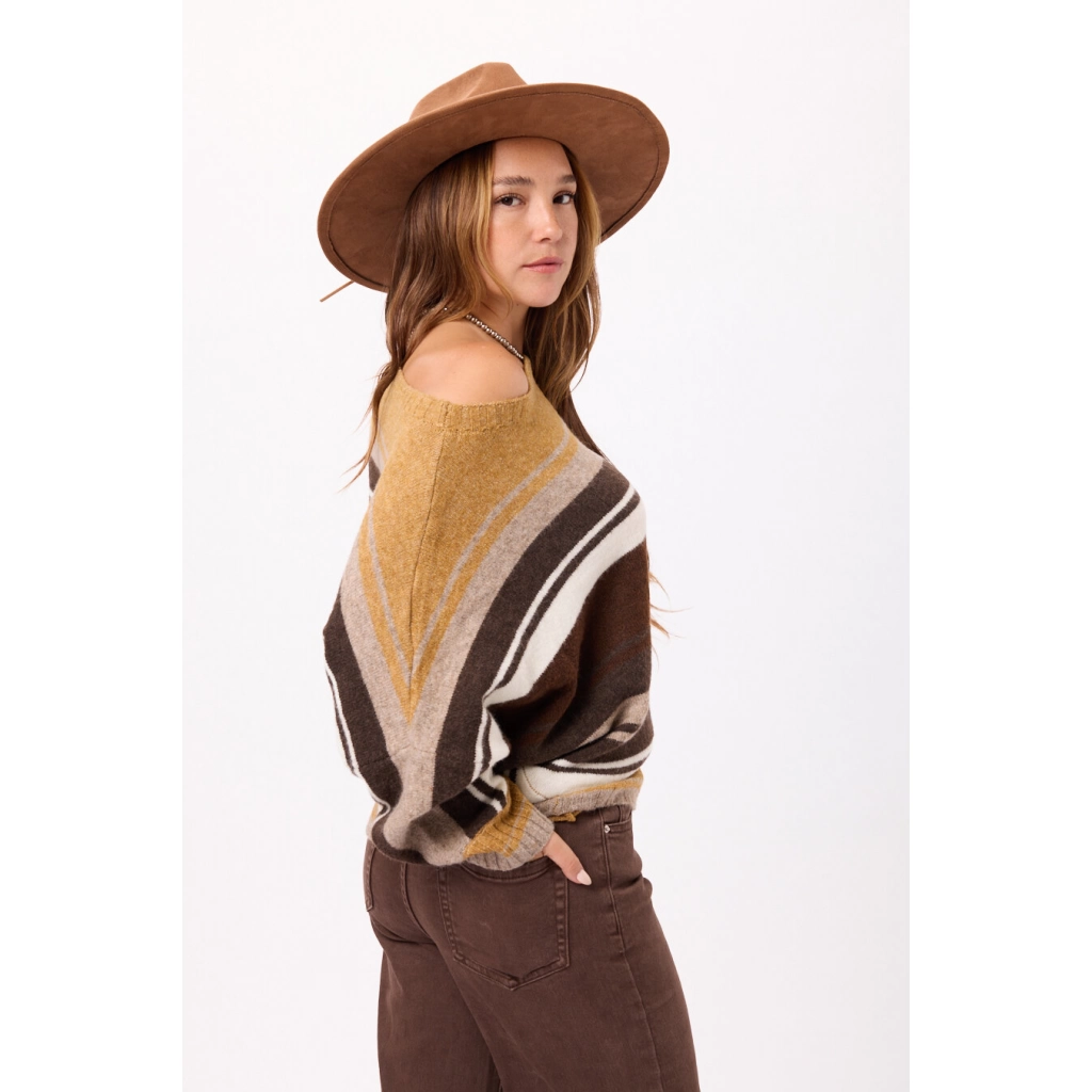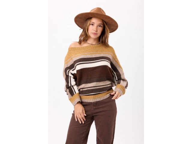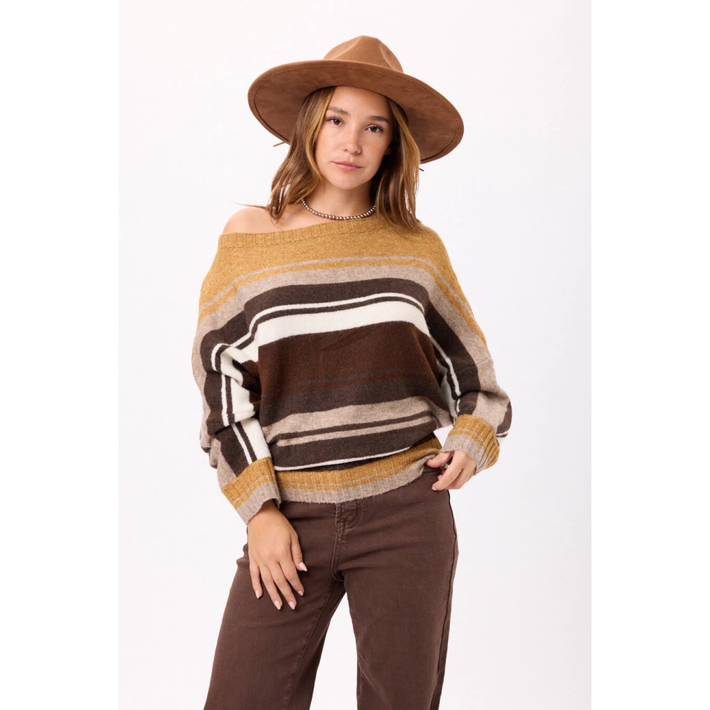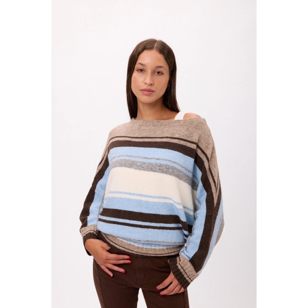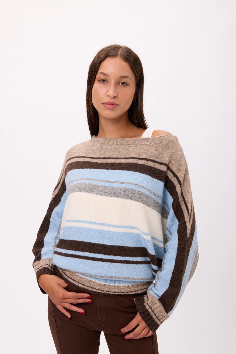 Sweater tejido a rayas Colores disponibles: marrón y azul.
