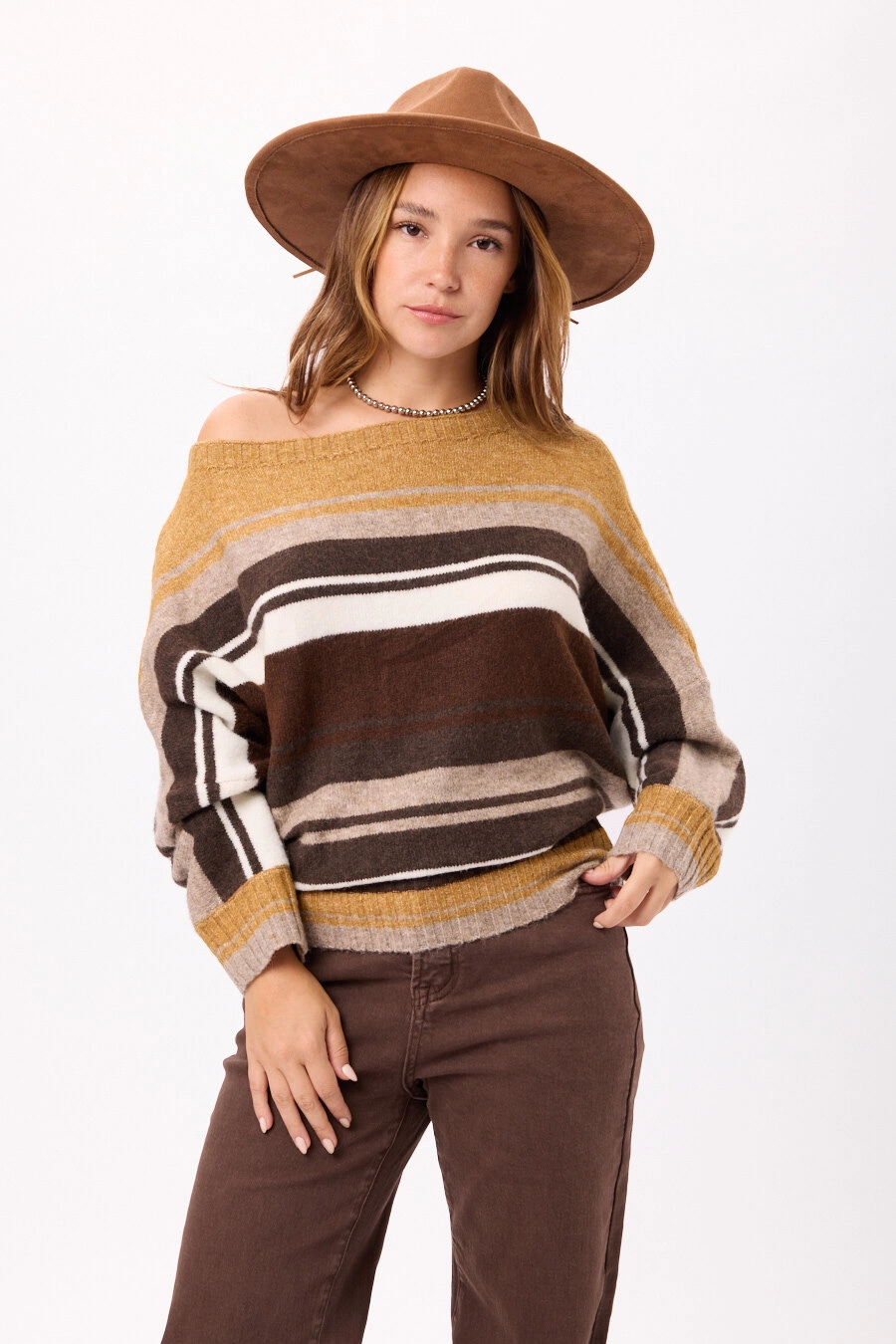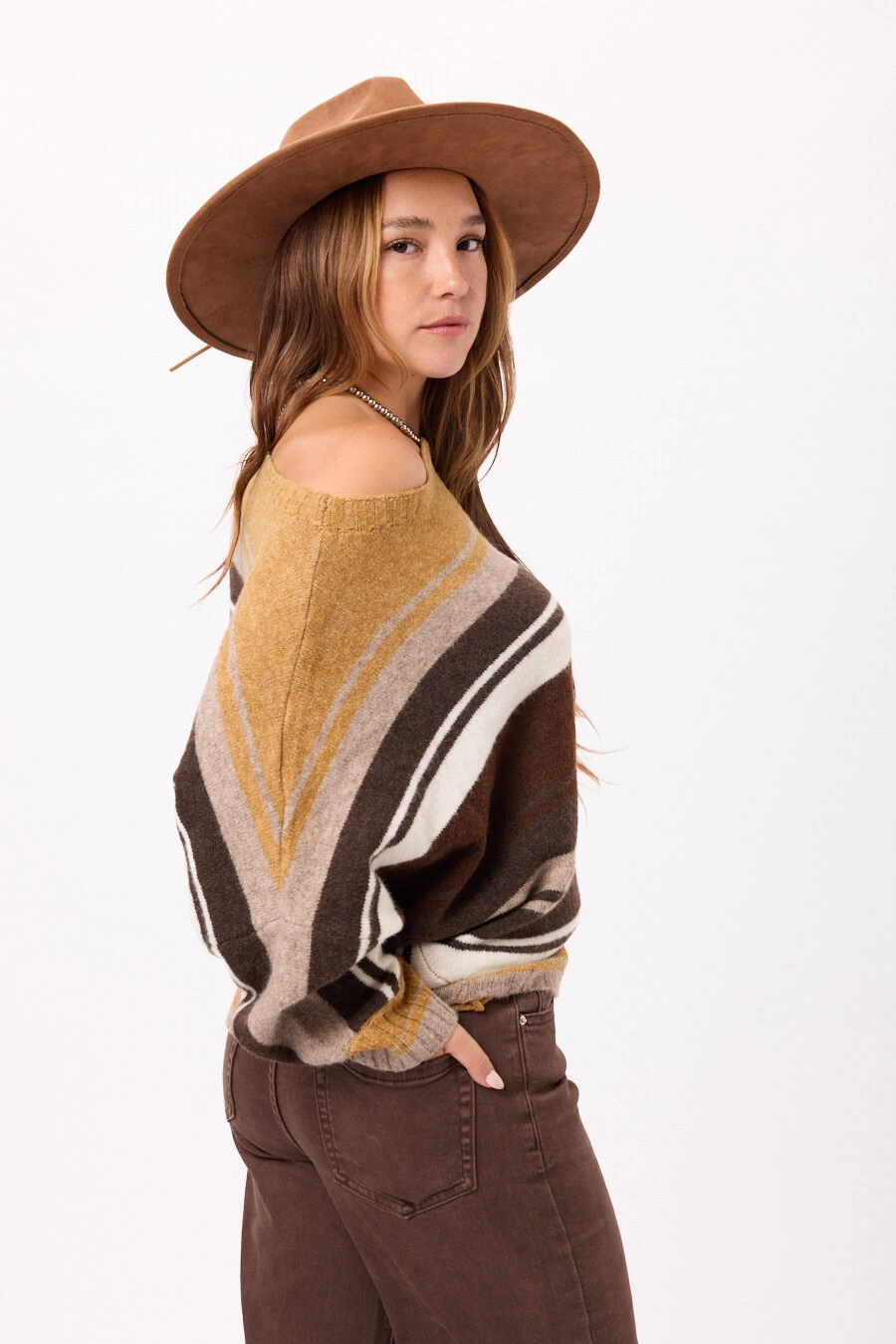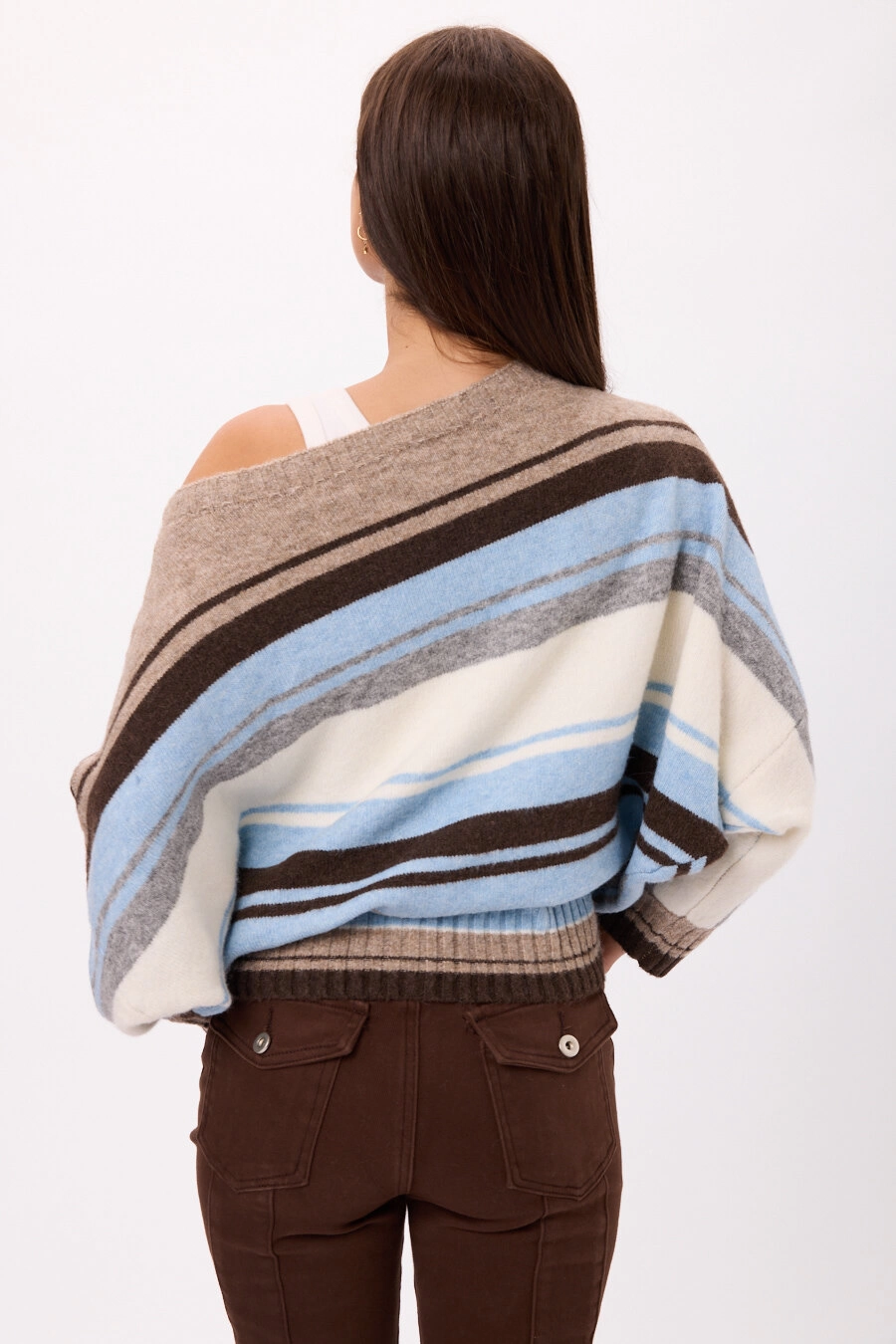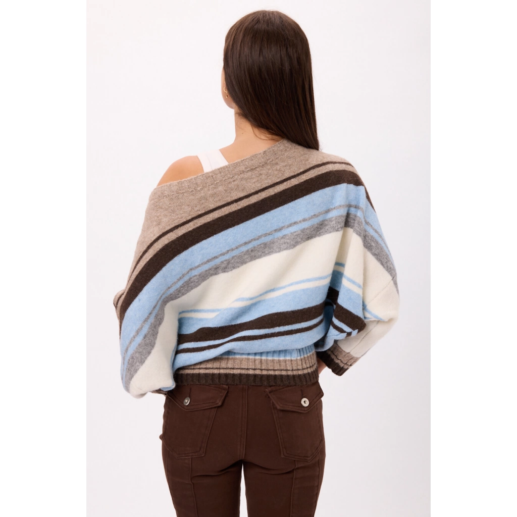Sweater tejido a rayas Colores disponibles: marrón y azul.