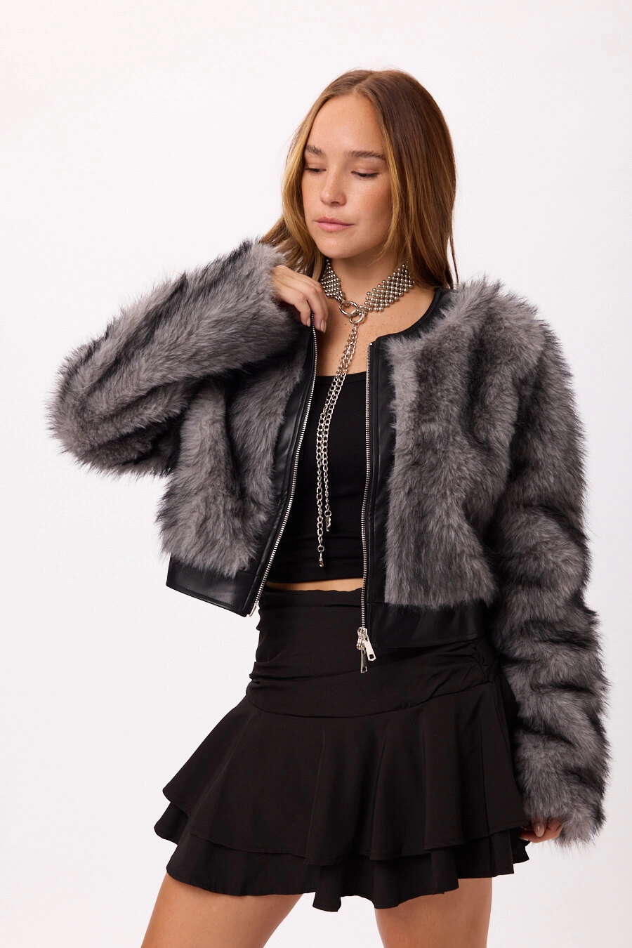 Campera de piel sintética Talle: Único Colores: Gris/Marrón Cierre frontal Diseño corto y elegante Piel sintética suave y abrigada Terminaciones de alta calidad