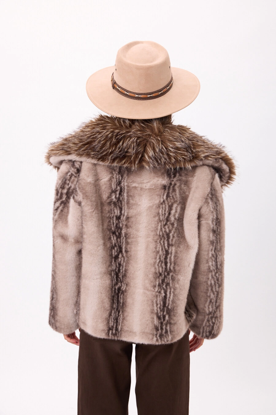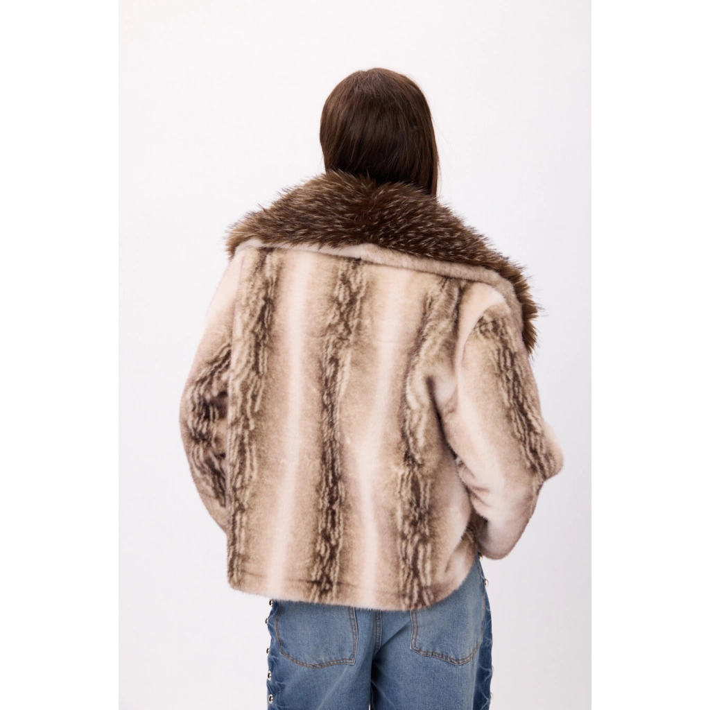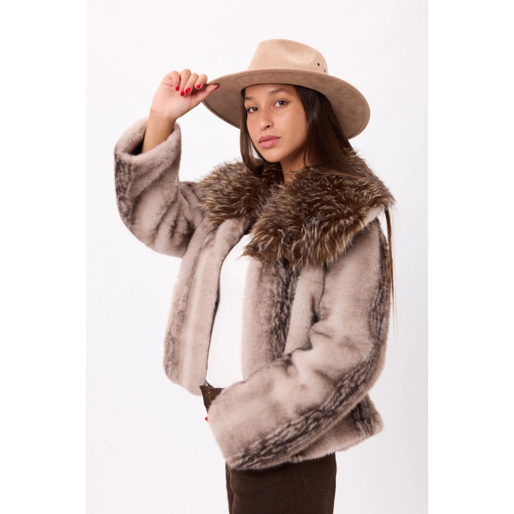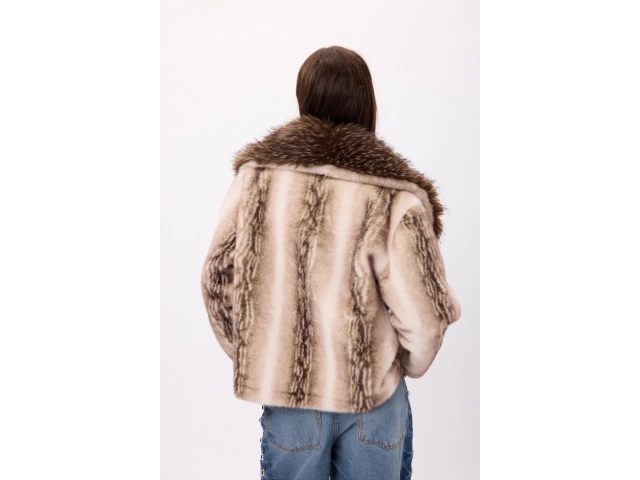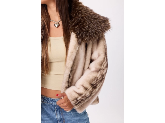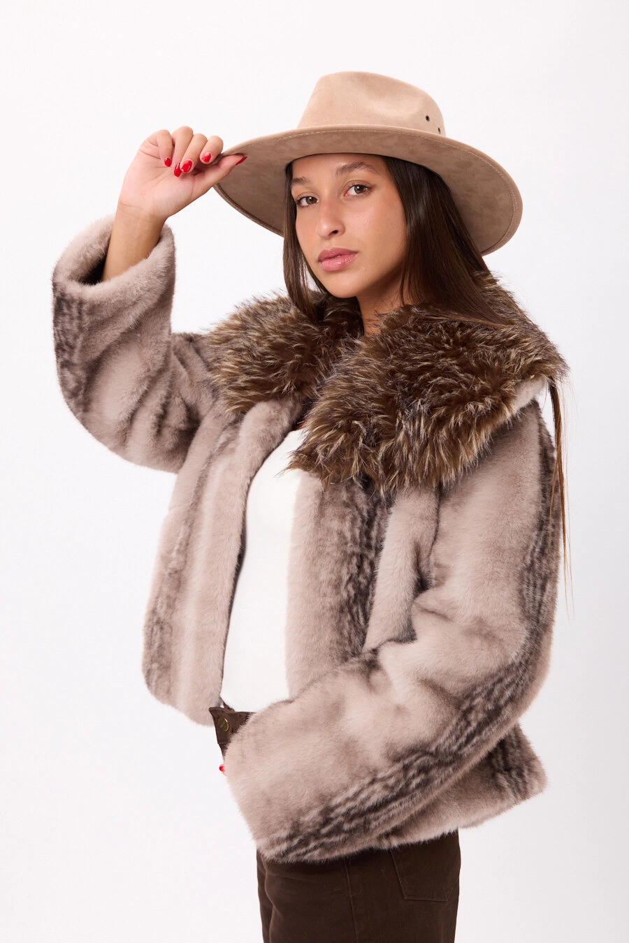 Campera corta de piel sintética súper abrigada, con cuello amplio de pelo Talle único.
