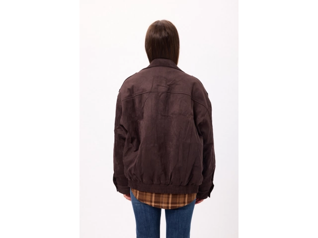Campera estilo suede/gamuza con cierre frontal y ajuste en cintura. Disponible en negro y camel