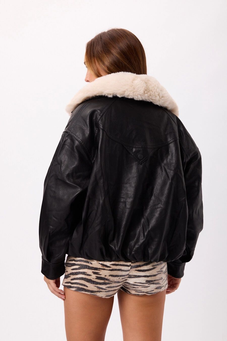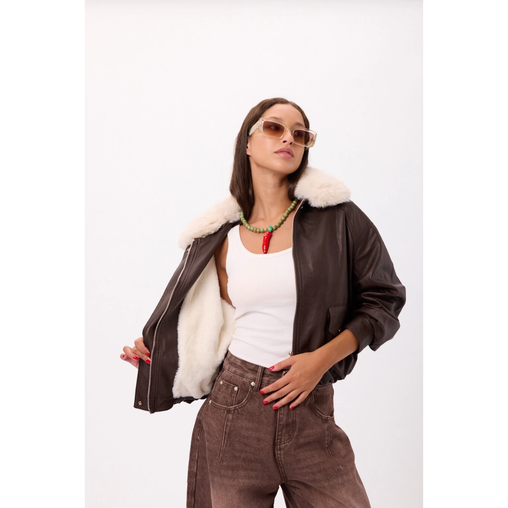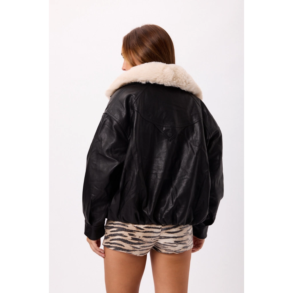 Campera bomber de eco cuero con cuello de corderito, Colores: marrón y negro. Talles: M/L/XL.