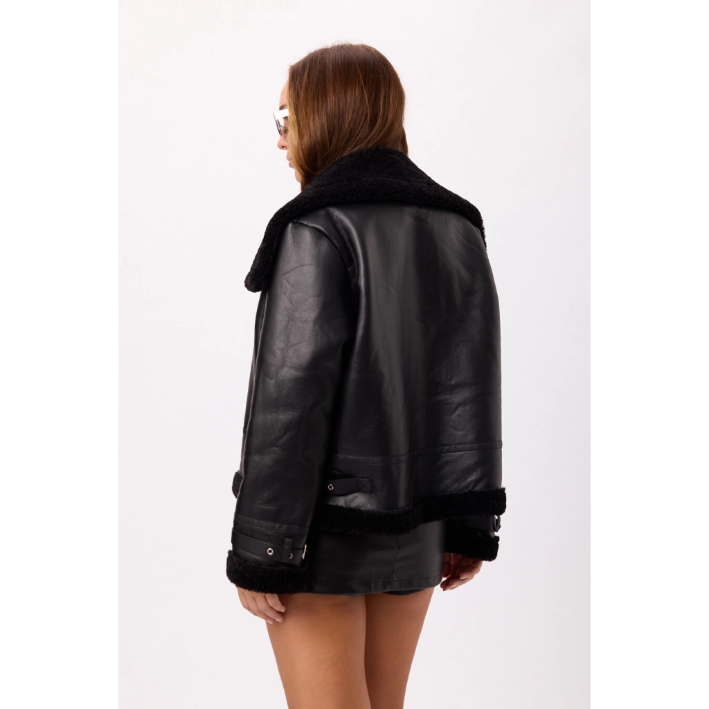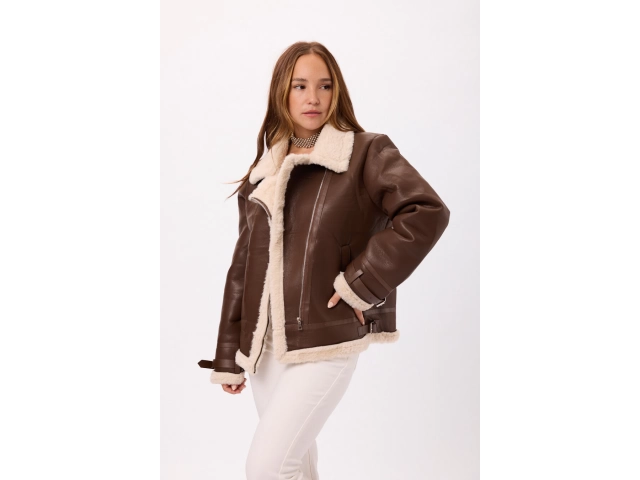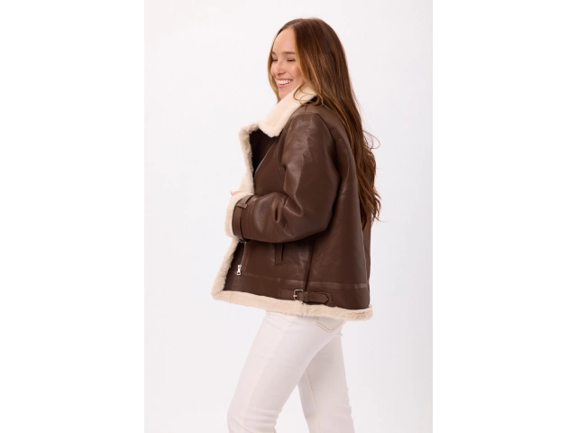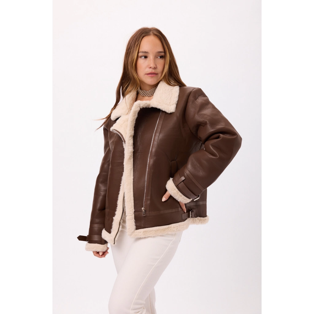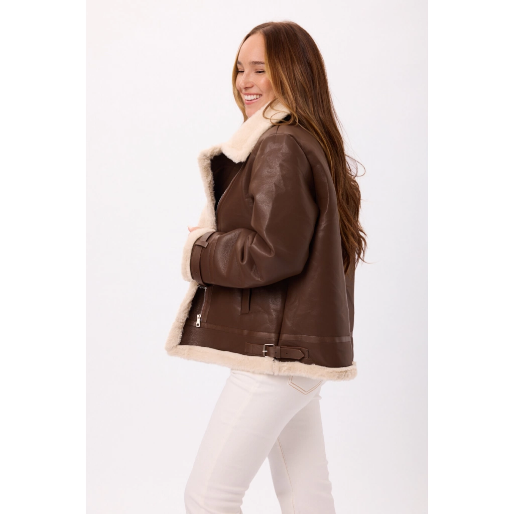 Abrigo tipo gamulán de eco cuero con interior de corderito Disponible en Negro y Marron Talle: M/L