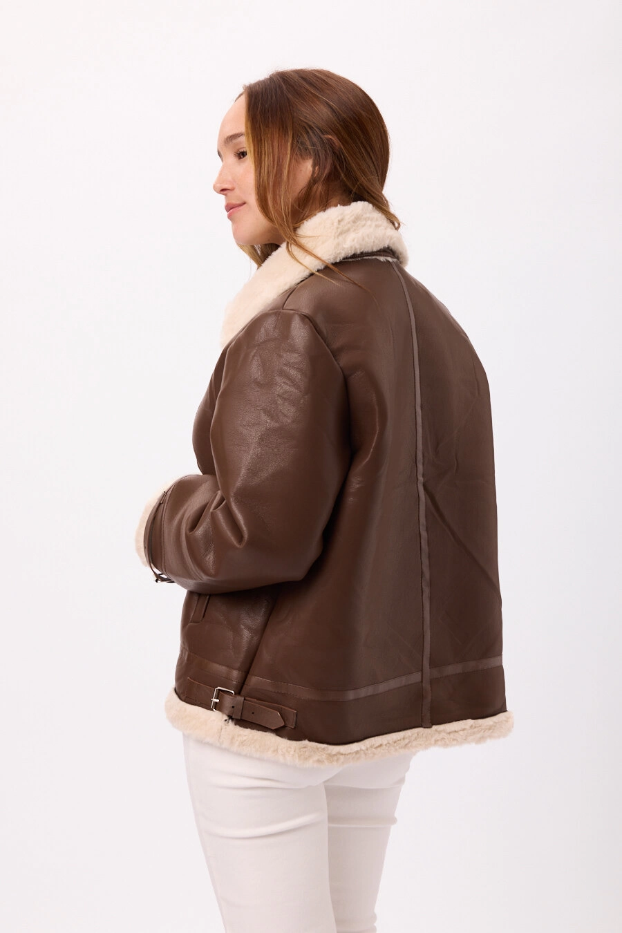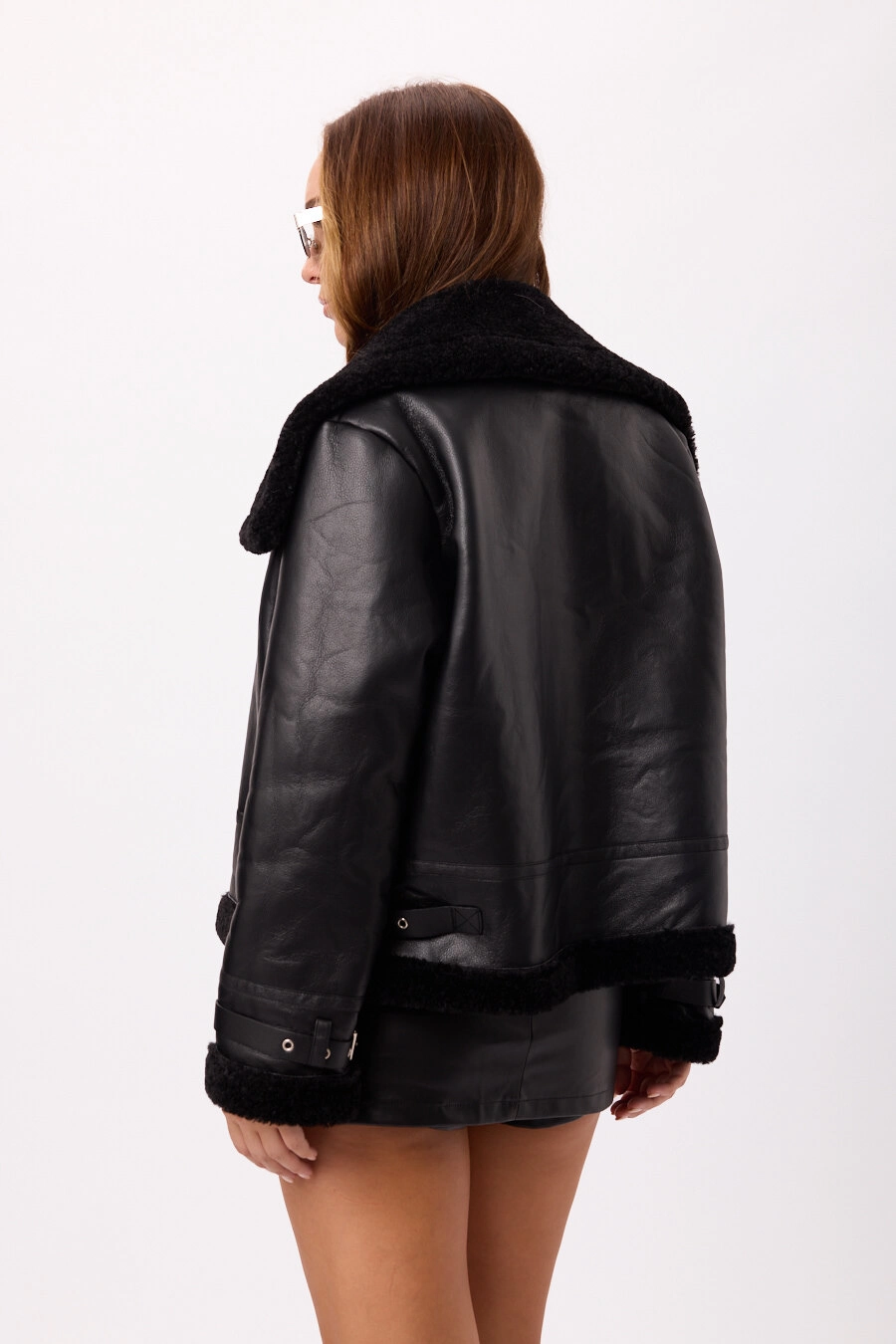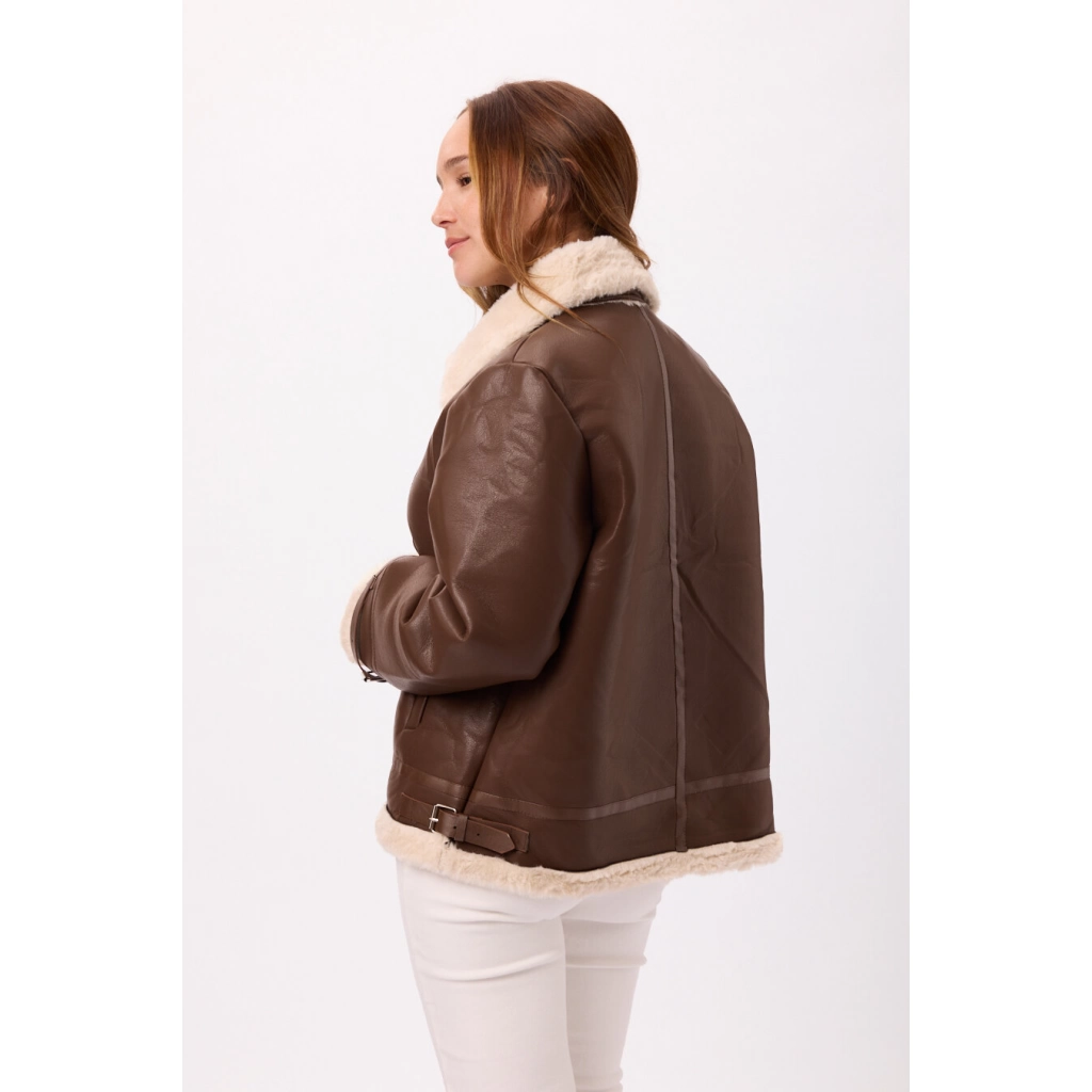 Abrigo tipo gamulán de eco cuero con interior de corderito Disponible en Negro y Marron Talle: M/L