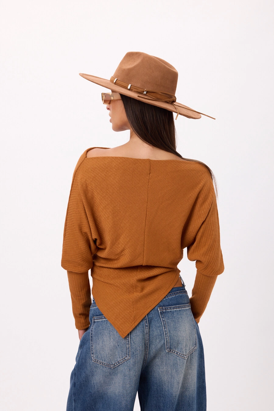 Sweater tejido con diseño asimétrico en pico Disponible en 3 colores. Talle único.