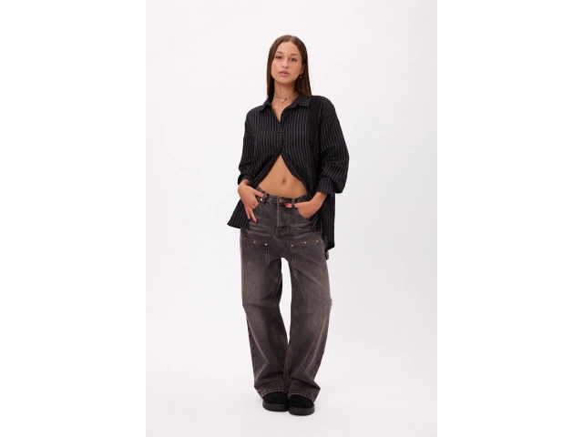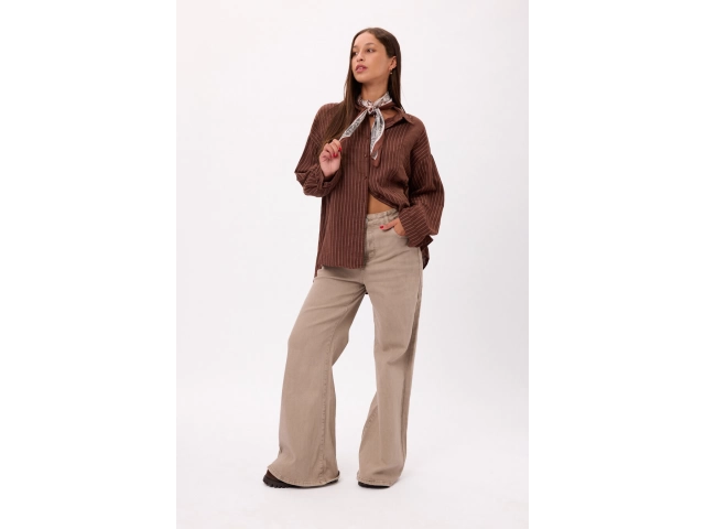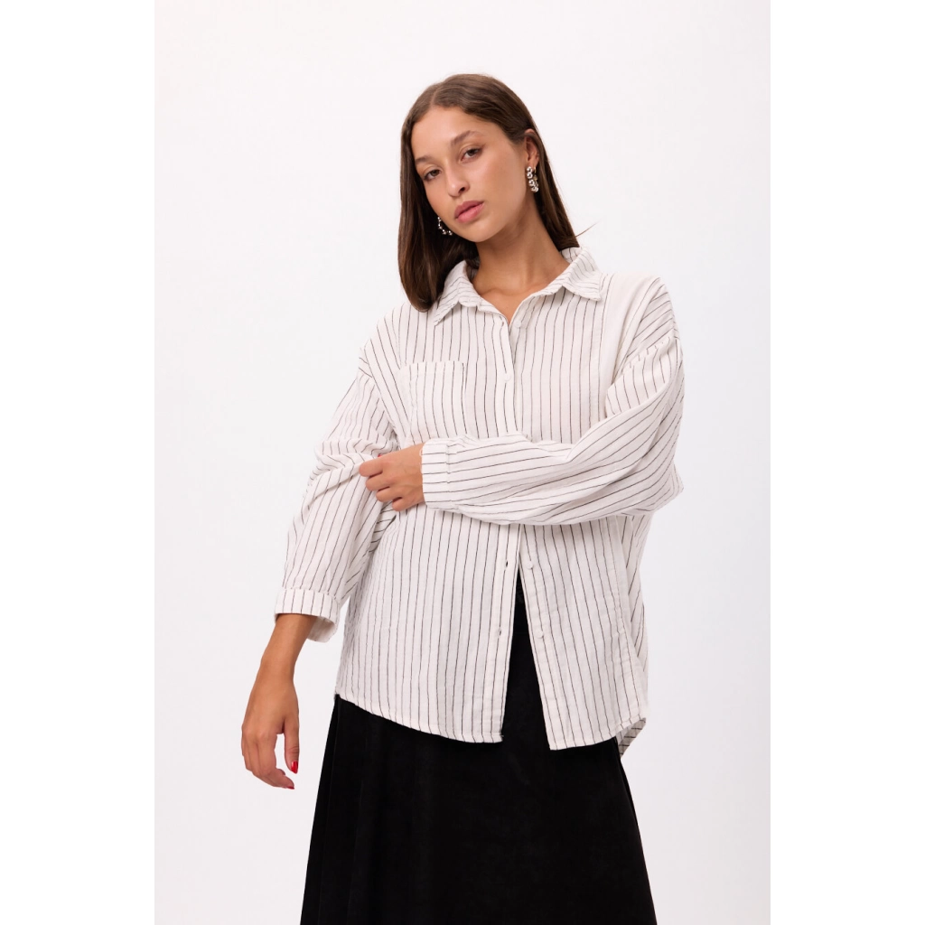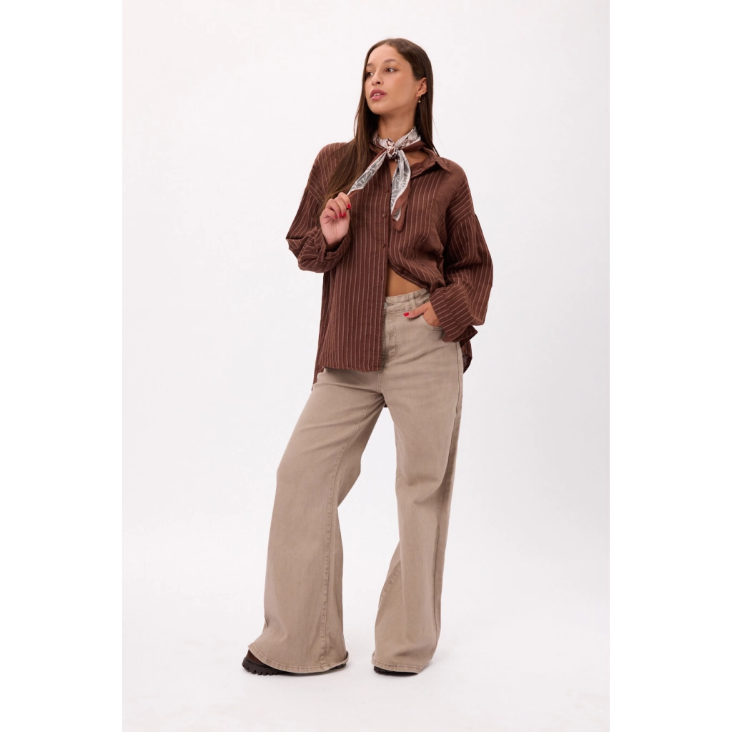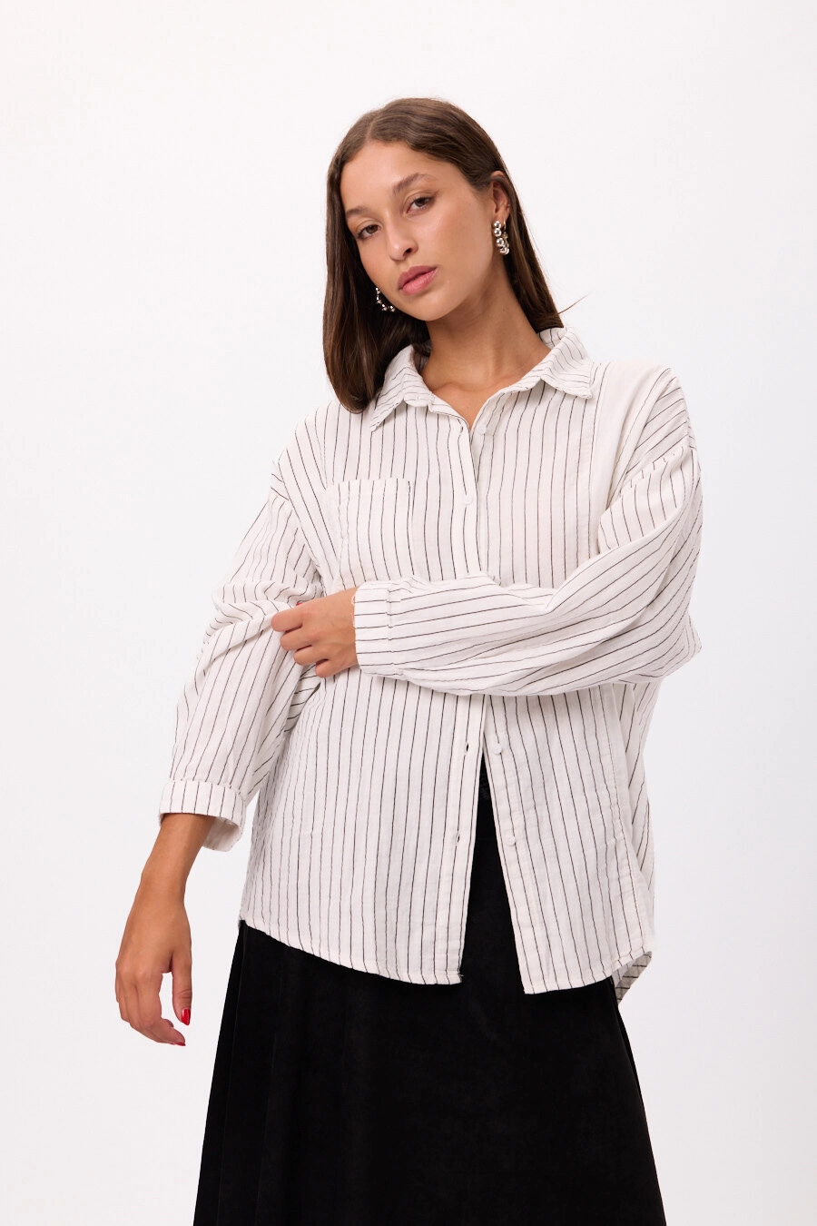 Camisa oversize a rayas, manga larga y calce relajado. Talle único. Colores: Negro, Blanco y Marrón.