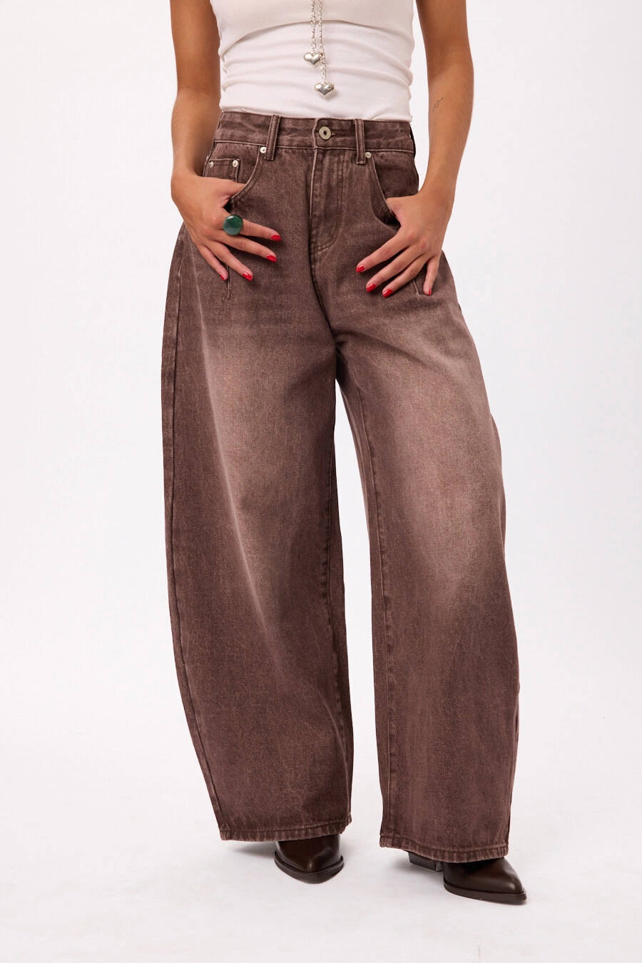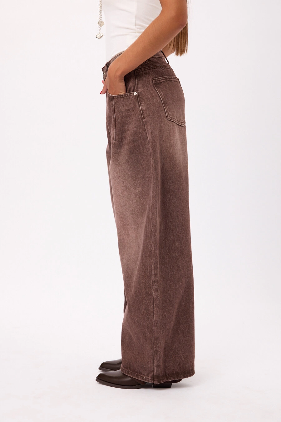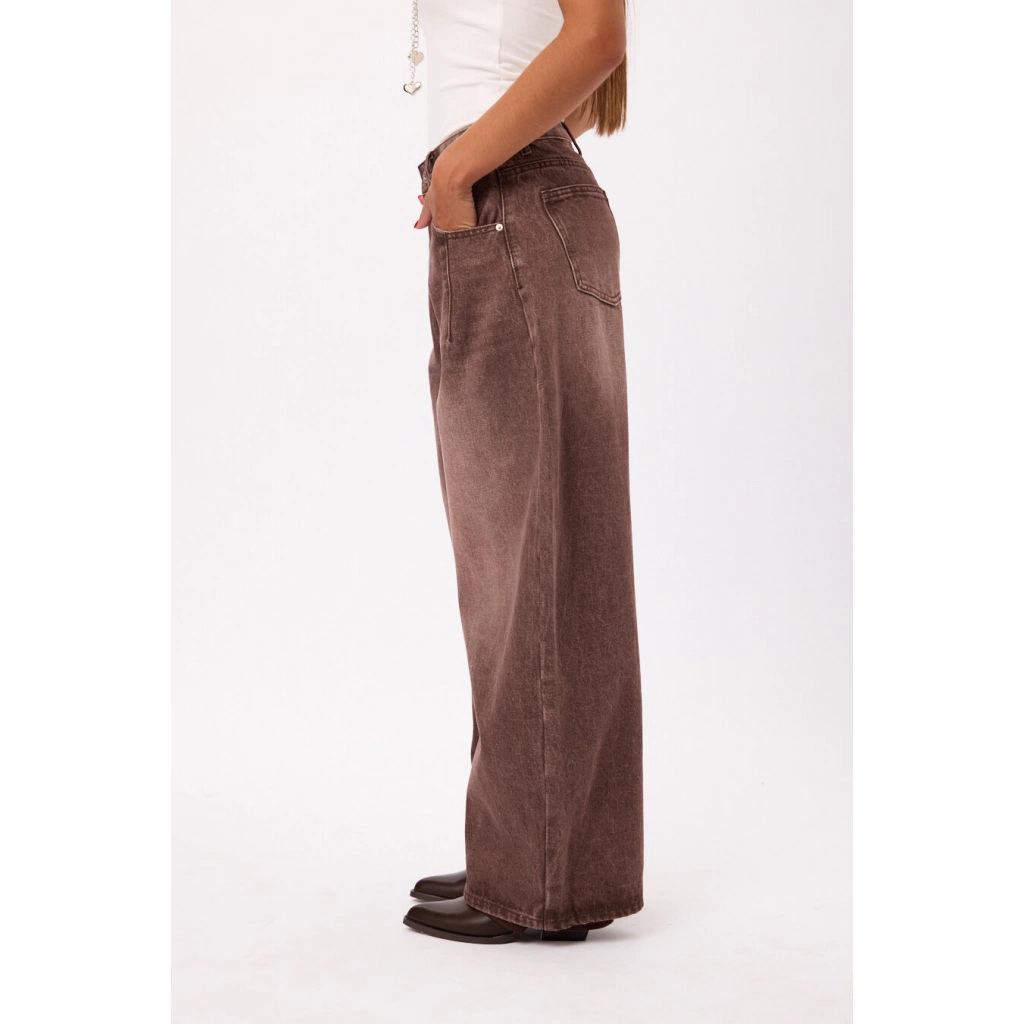 Pantalón wide leg tiro alto en denim, con pierna amplia Talles disponibles: S/M/L/XL.