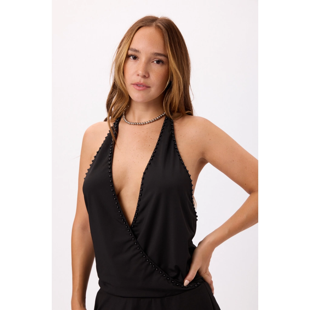 Vestido negra con escote Halter y Apliques Talle: Único Color: Negro