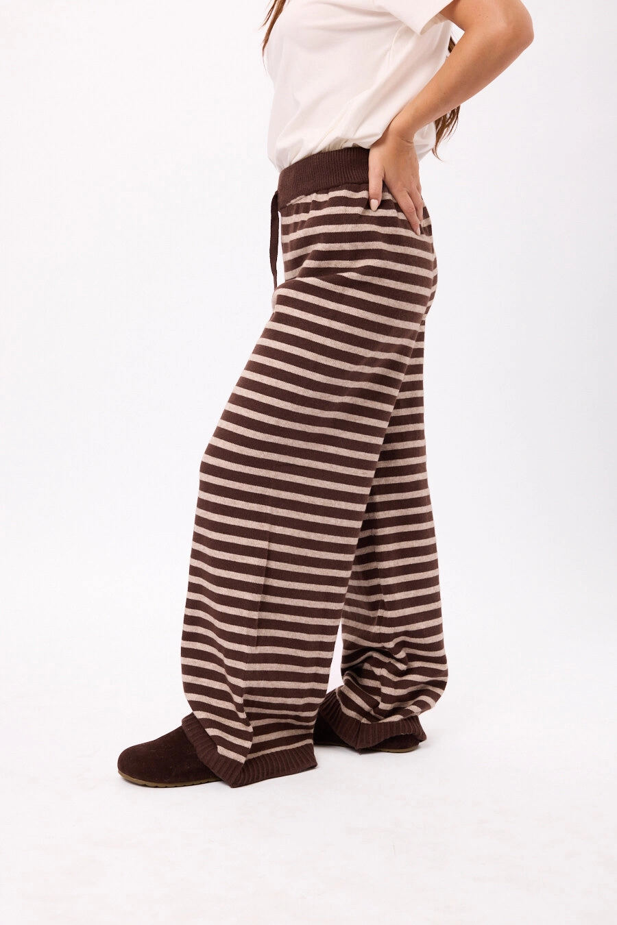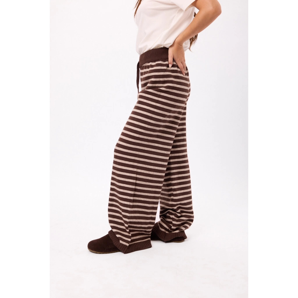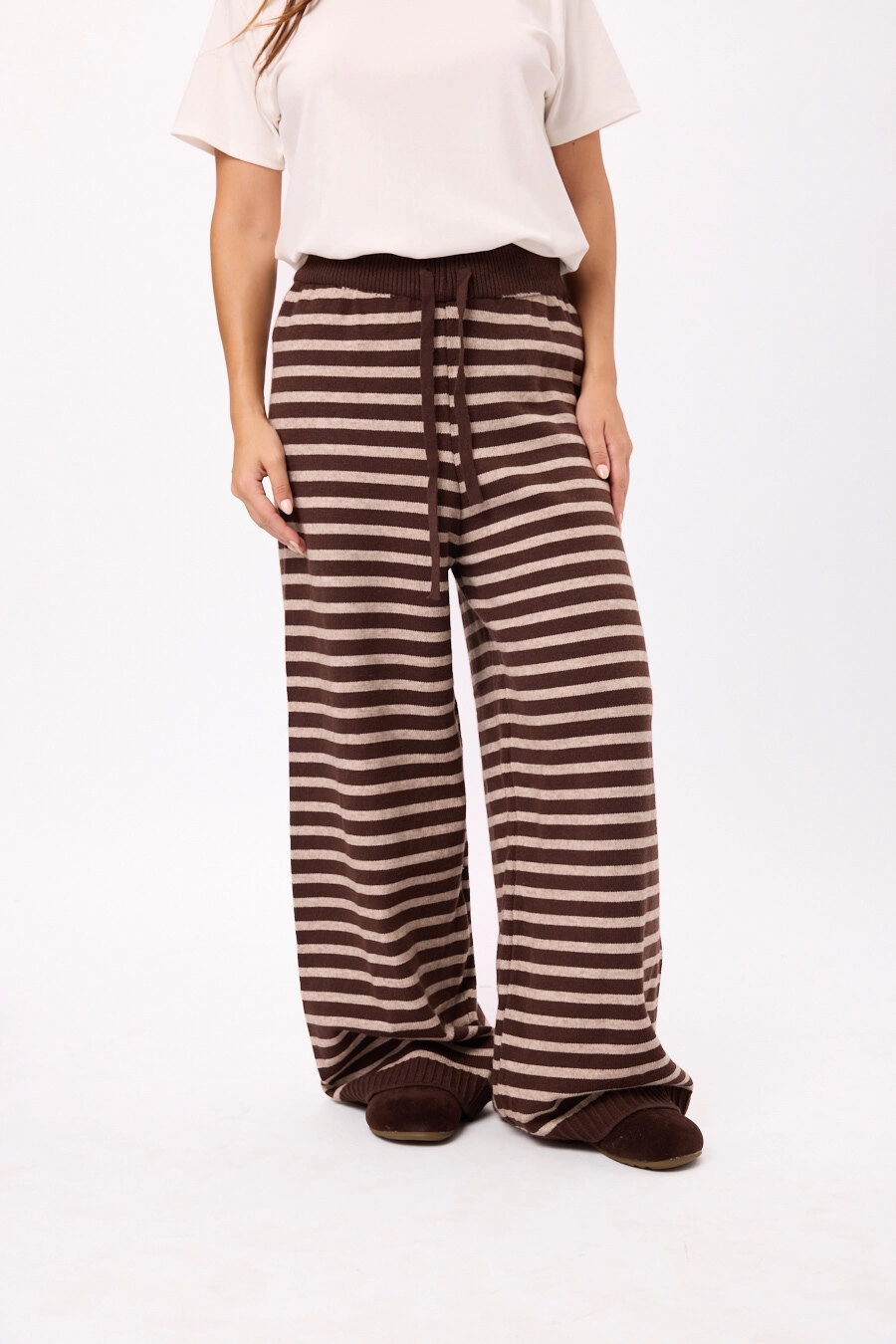Pantalón a rayas con cintura elástica y cordón ajustable Color: marrón café/chocolate