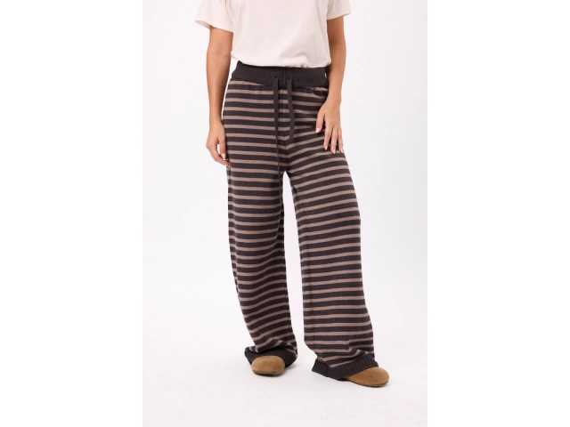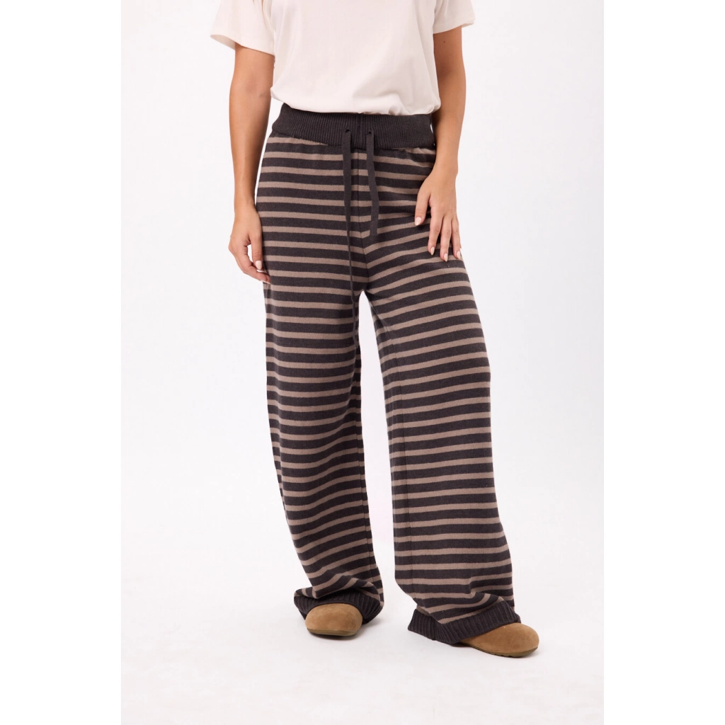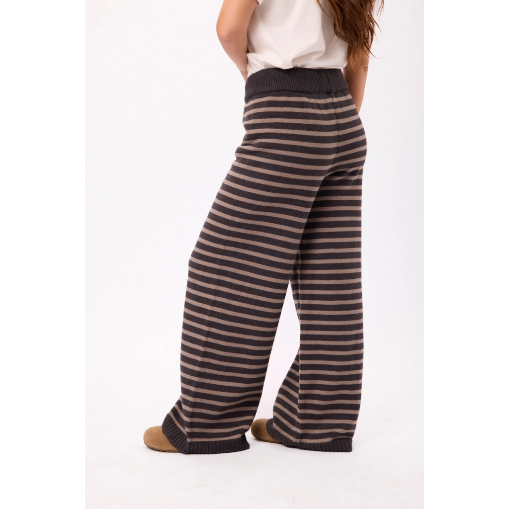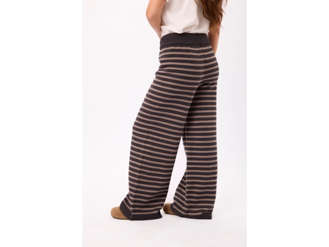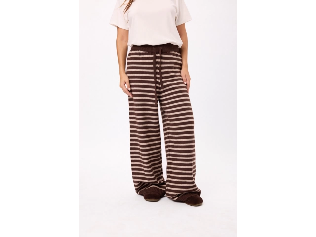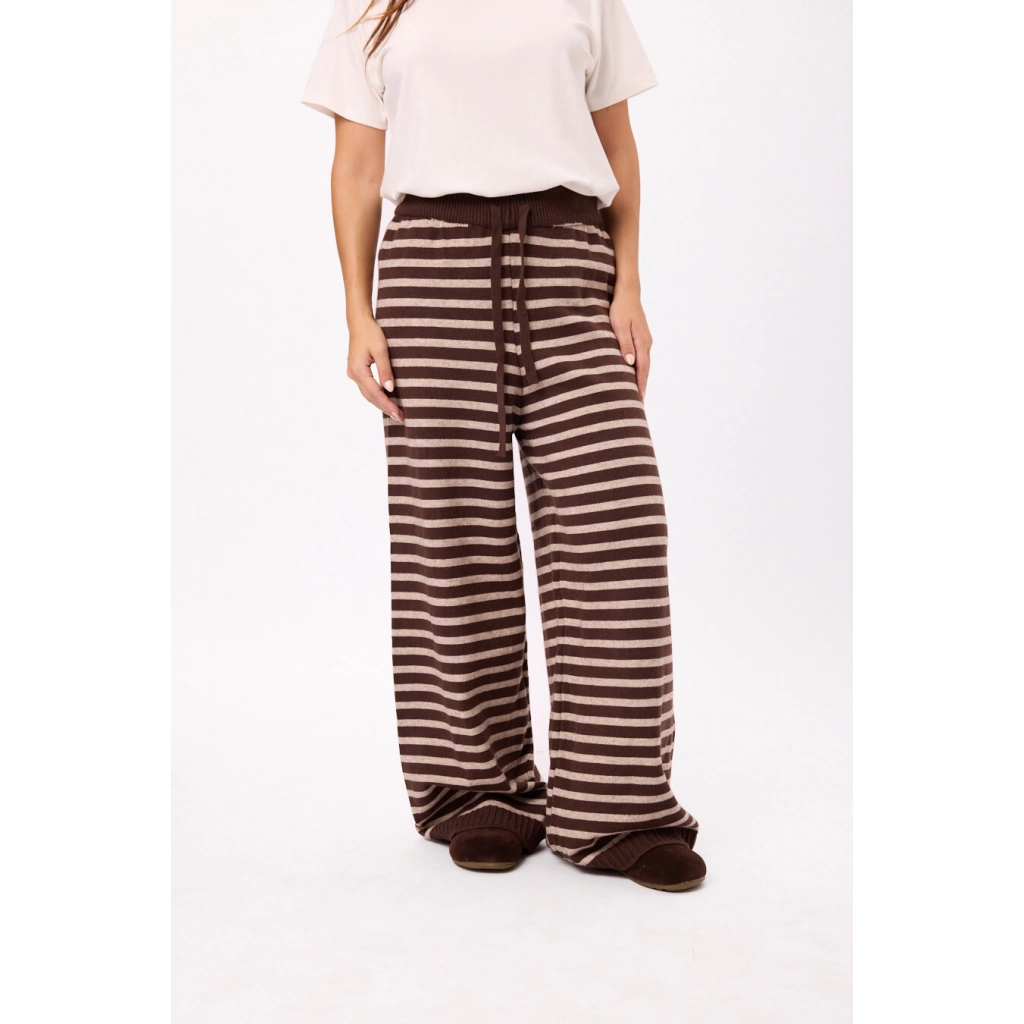 Pantalón a rayas con cintura elástica y cordón ajustable Color: marrón café/chocolate